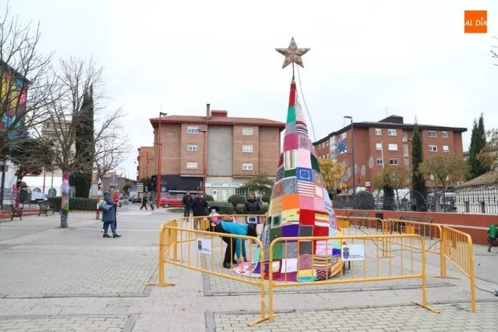 Además, la localidad ya disfruta de ambiente festivo al estrenar un árbol de Navidad de 4 metros que se ha realizado con la participación ciudadana a base de punto de lana, piezas de 30x30 que cada persona ha tejido.