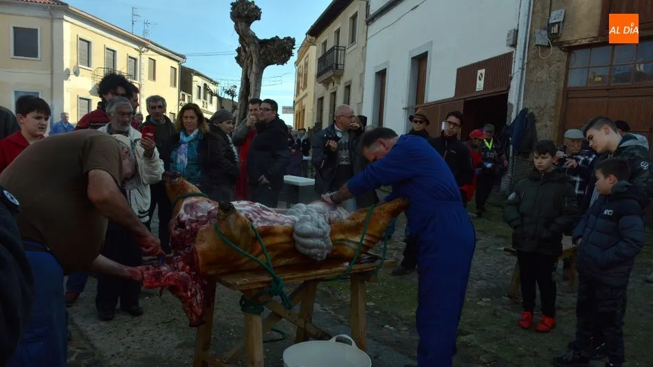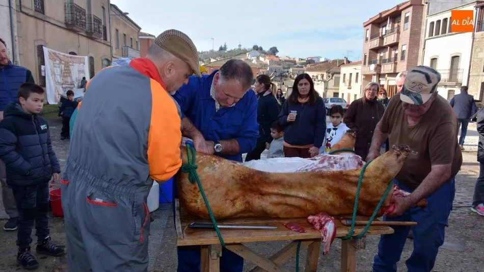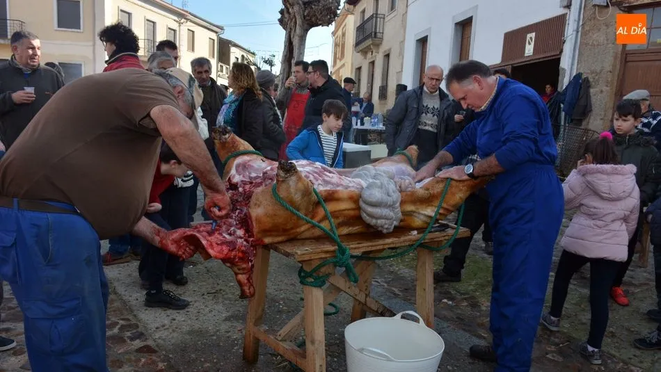 Vecinos y turistas disfrutaron de todo el proceso de la matanza del cerdo, dirigido por Juan José Sánchez Gamito, el Matancero de Honor del 2019