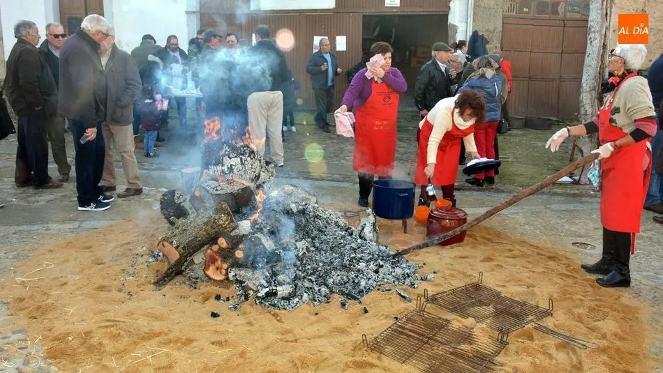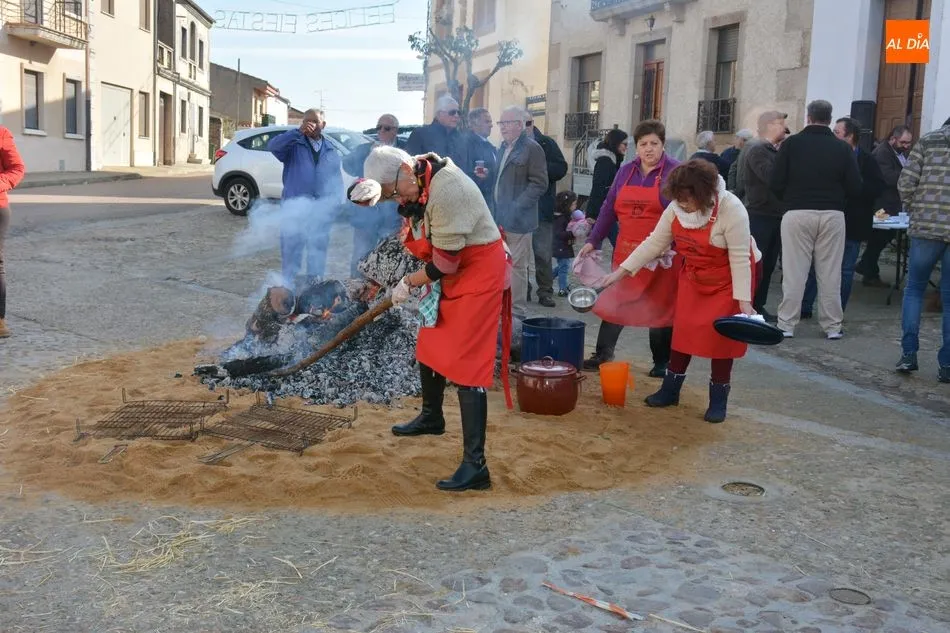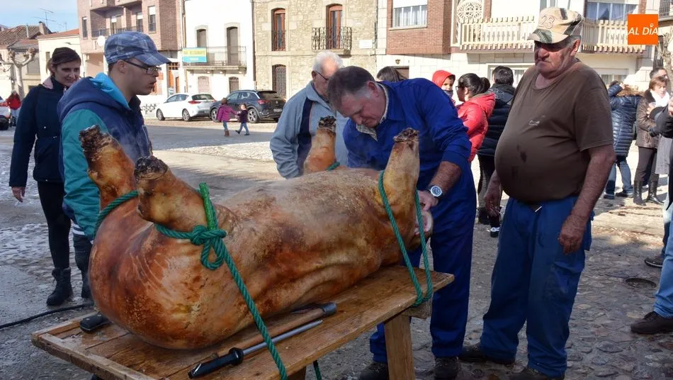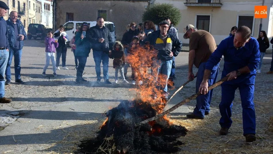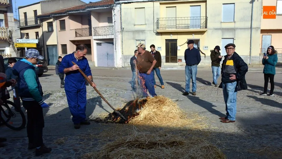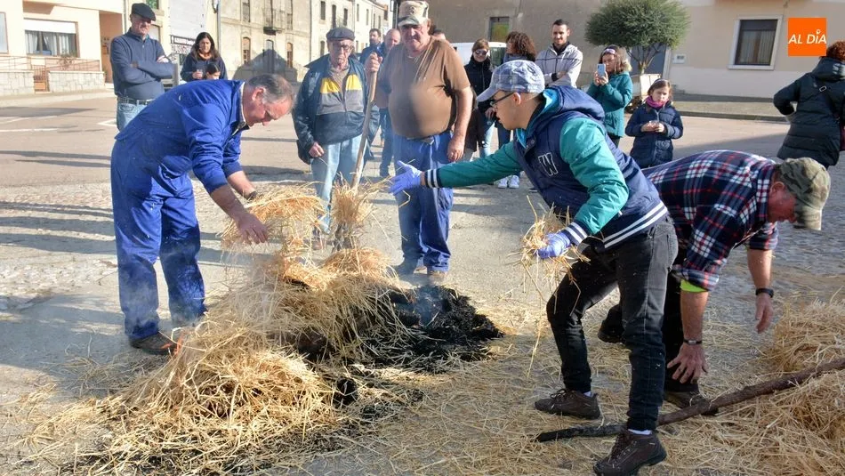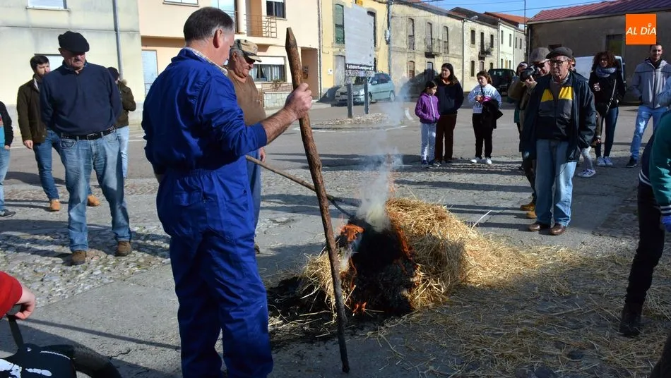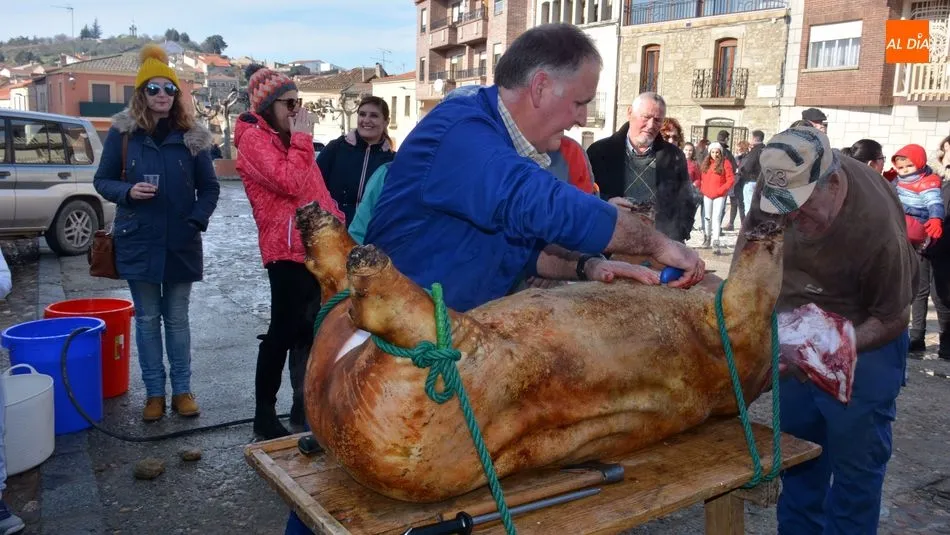 A media mañana, con la llegada a la plaza del cerdo ya sacrificado, se procedió al chamuscado del animal en una hoguera de paja y a la posterior retirada de lo chamuscado con piedras, tapaderas y agua, tarea en la que ayudó el alcalde de la villa, José Francisco Bautista.