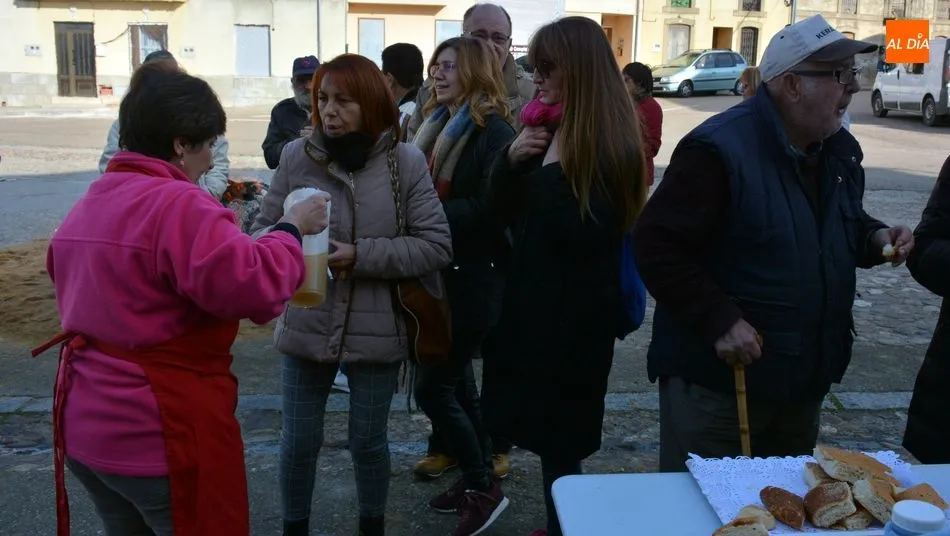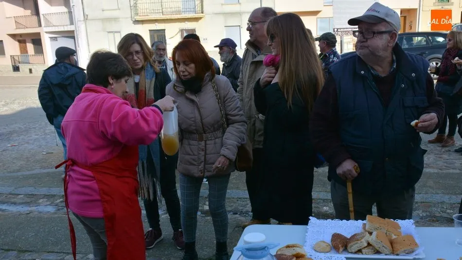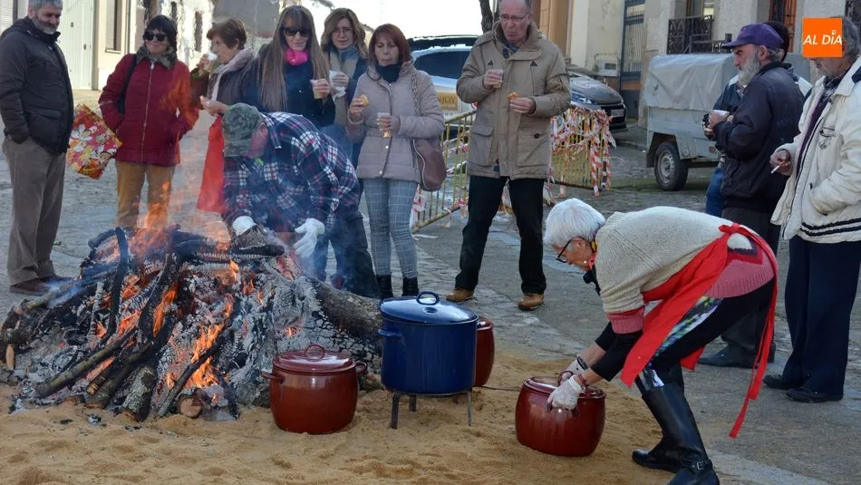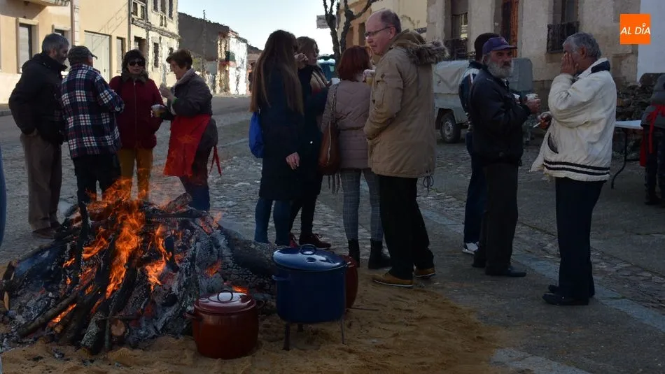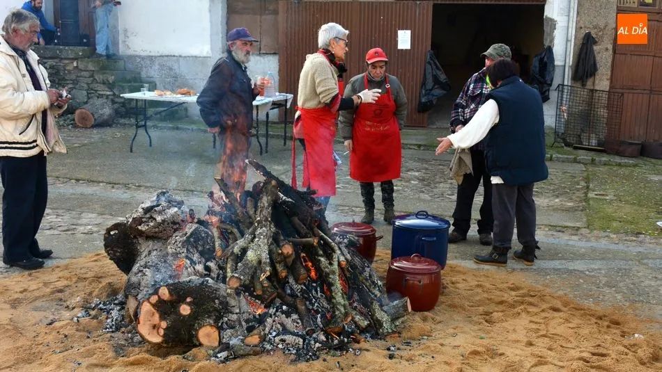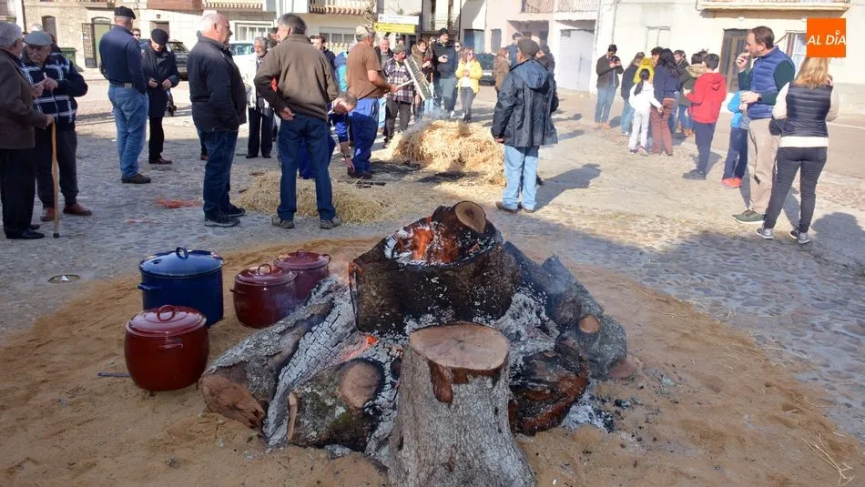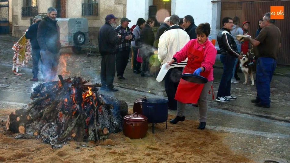 La plaza del Juego de pelota de Hinojosa de Duero se ha convertido en la jornada de hoy en una gran cocina matancera con motivo de la celebración de la XVIII Matanza típica del cerdo. Y como en una típica jornada de matanza, en este escenario se han reunido los vecinos de la villa y muchos turistas que han llegado a Hinojosa para conocer y disfrutar de una de las actividades con más tradición en el medio rural. Los llegados eran acogidos con un exquisito caldo caliente y dulces artesanos (tortas, perronillas, mantecados..), además de aguardiente y vino, un desayuno típico en torno a una gran hoguera que aliviaba del frío, aunque el sol también estuvo presente en la jornada matancera.