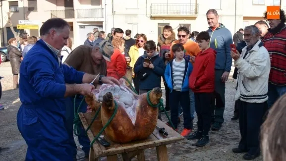 Acogedora jornada de matanza típica del cerdo en Hinojosa de Duero