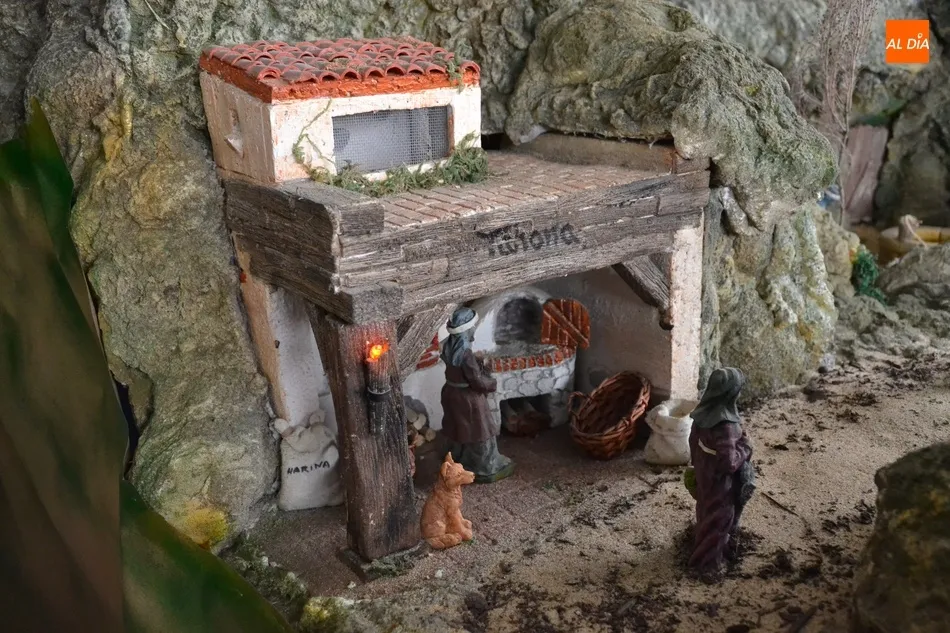 El responsable del establecimiento y del belén, José, ha estado trabajando en el montaje junto a su hijo Igor durante el último mes, aprovechando ratos libres por ejemplo al finalizar la jornada laboral (más allá de las 20.00 horas). Sin embargo, el proceso de creación del belén lo extiende a todo el año, ya que va trabajando en la elaboración de nuevos elementos, como por ejemplo casas, fabricando artesanalmente un par de ellas cada año.