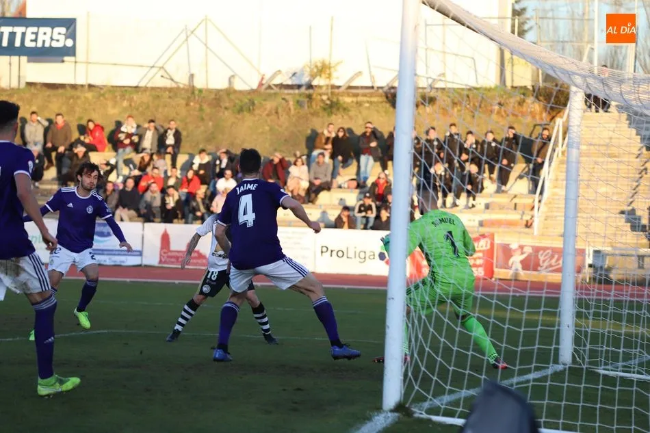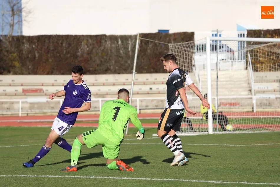 Al igual que en el arranque del primer tiempo, Unionistas también avisó sobre la portería de Samu nada más arrancar la segunda. Guille Andrés, con un remate de volea que se marchó fuera, tuvo el gol en sus botas.