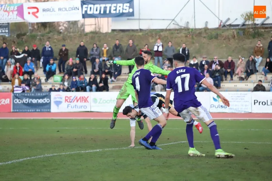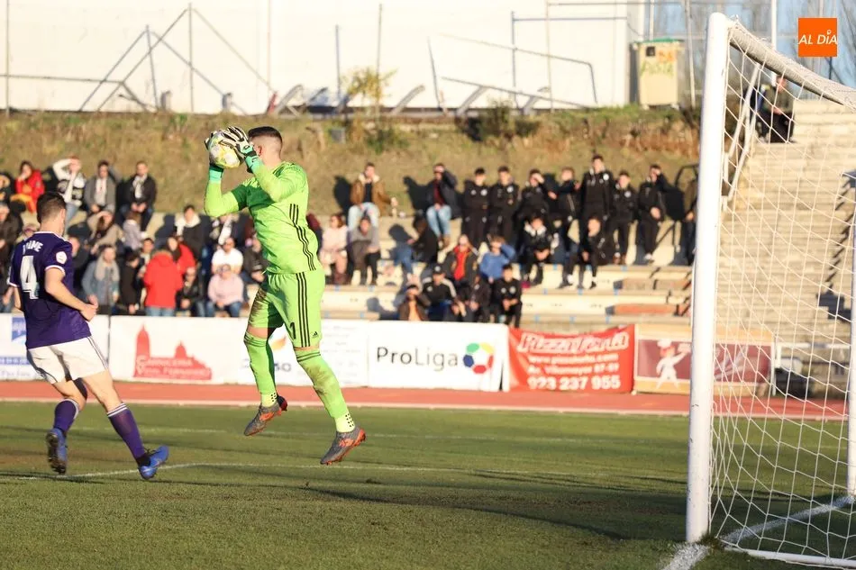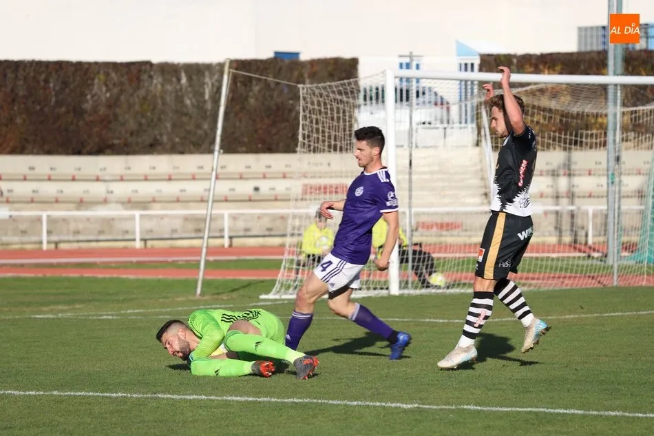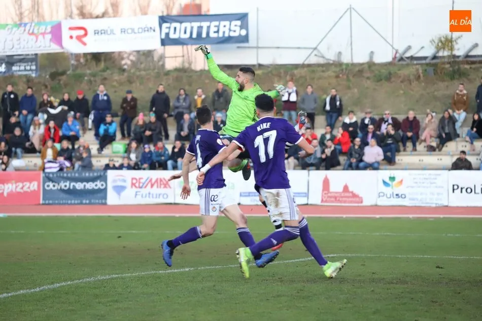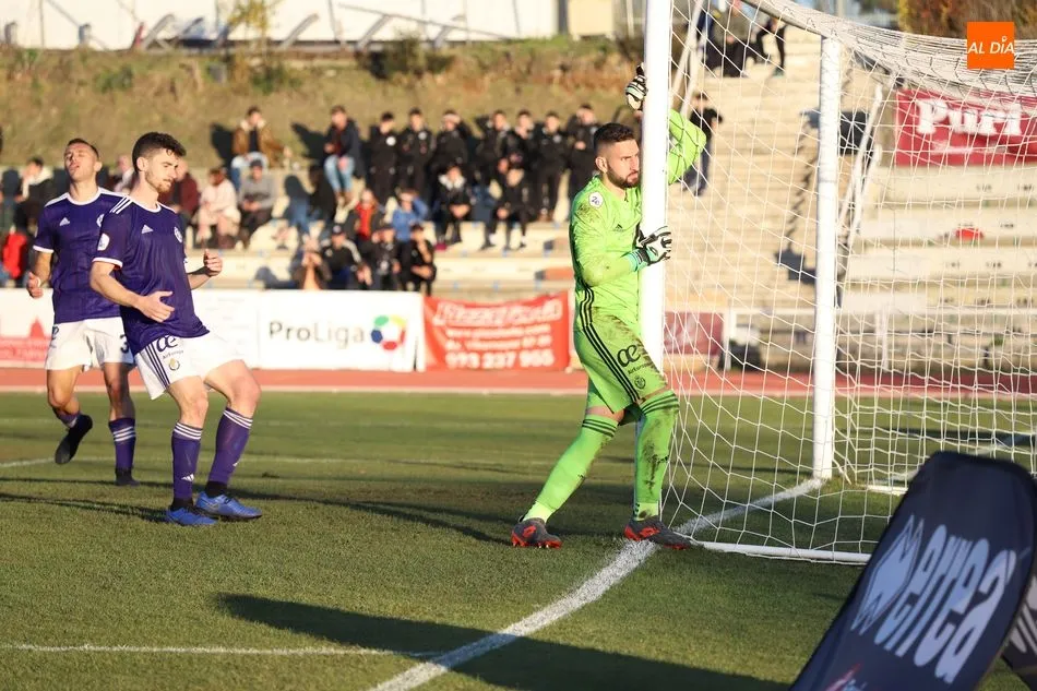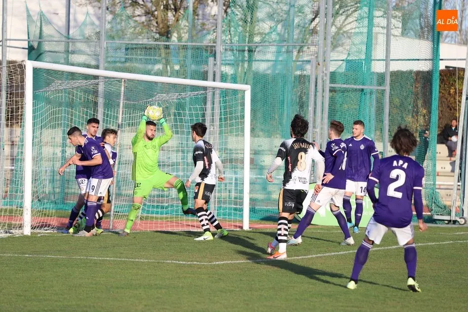 Tras el aviso de De la Nava, Góngora lo intentó también, aunque su disparo desde casi el centro del campo lo atrapó sin problemas el portero vallisoletano.