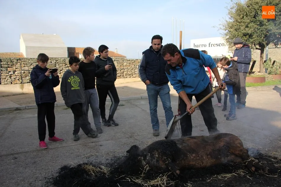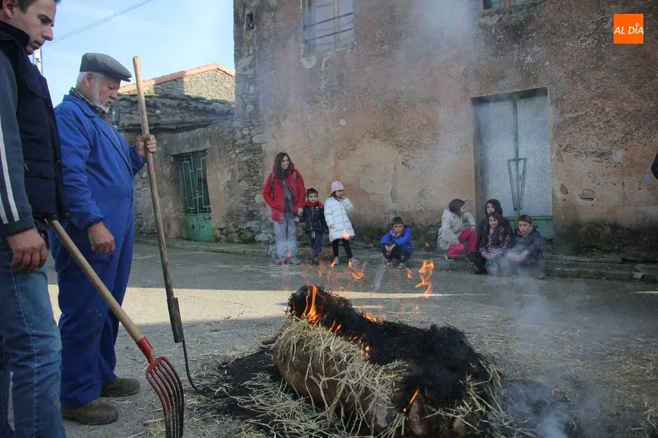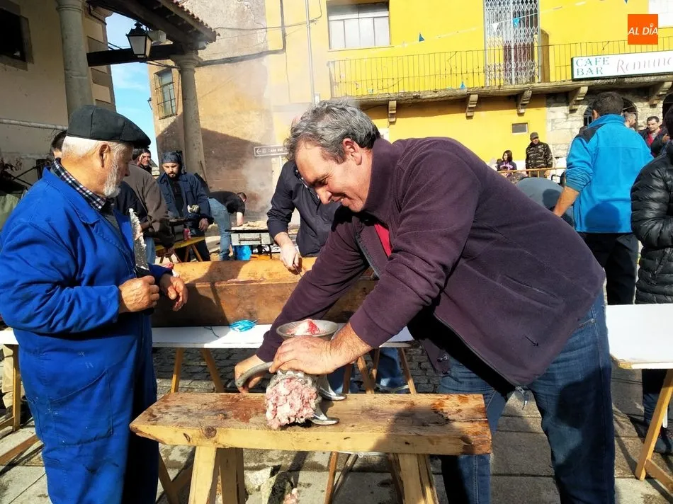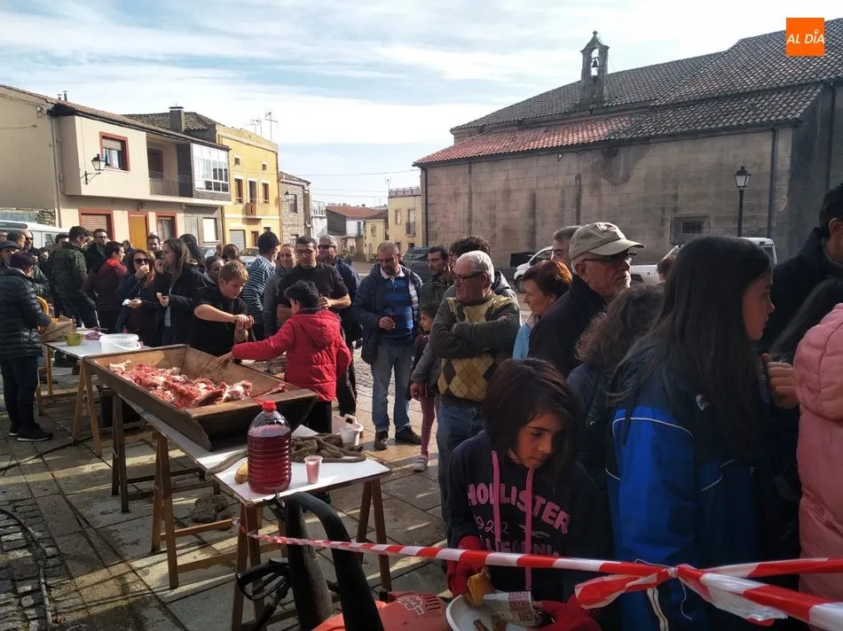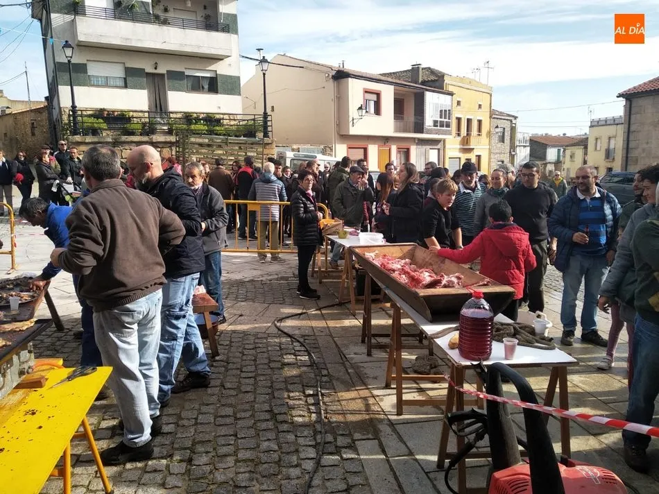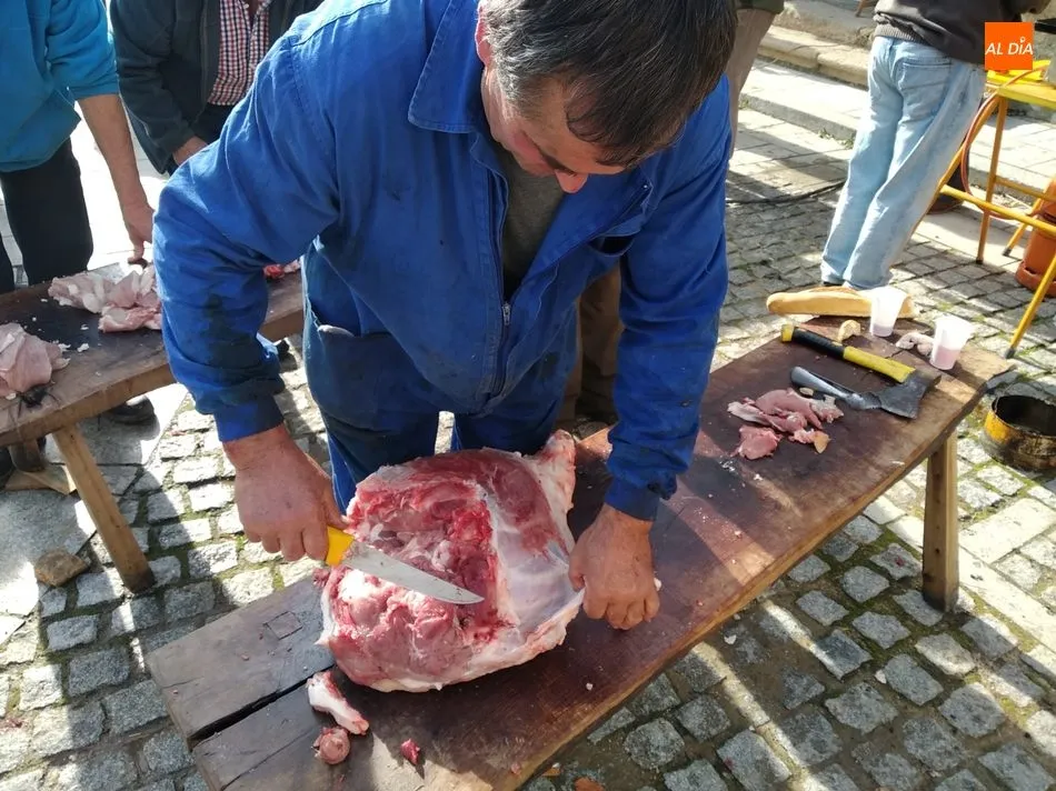 El broche a esta jornada matancera lo pondría una comida con la carne de la cochina a la brasa, todo un manjar con solo unos granos de sal y que sería el colofón a unos actos amenizados por el tamborilero de Vitigudino, Alejandro Hernández.