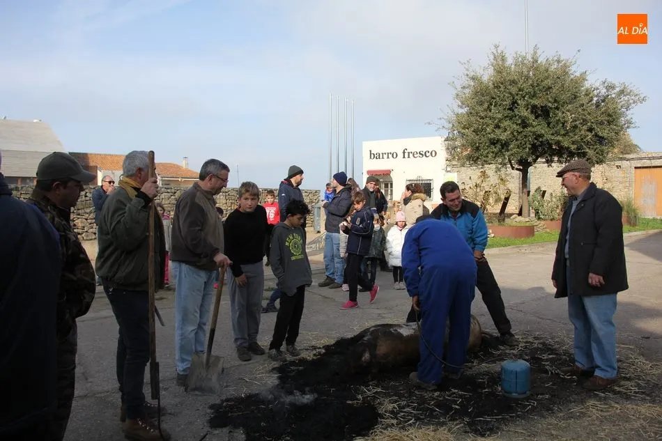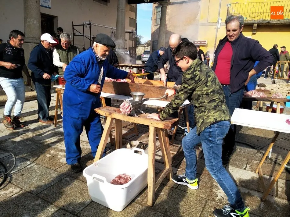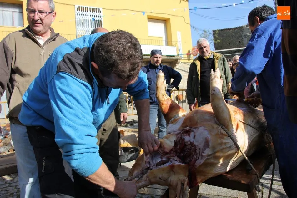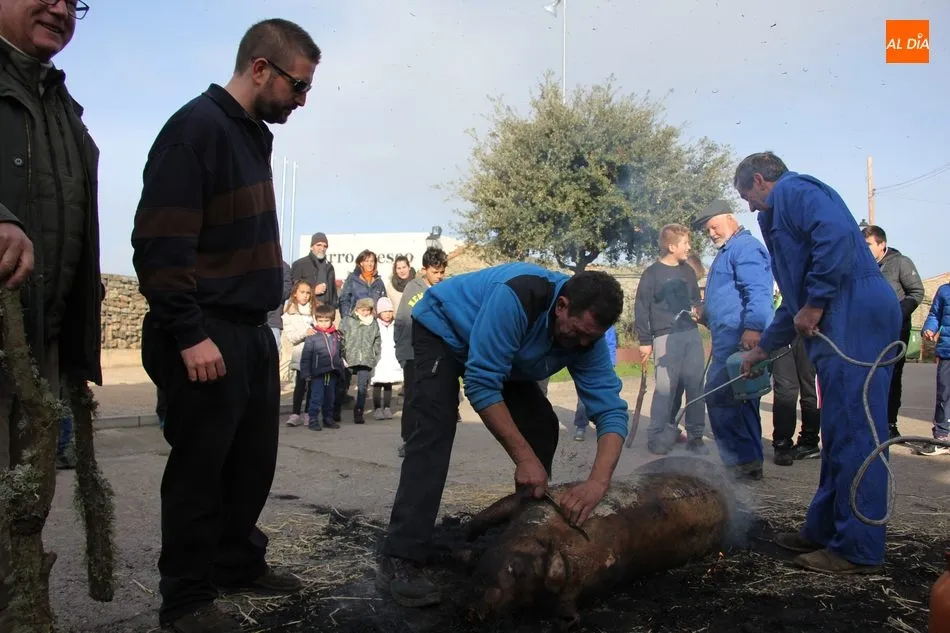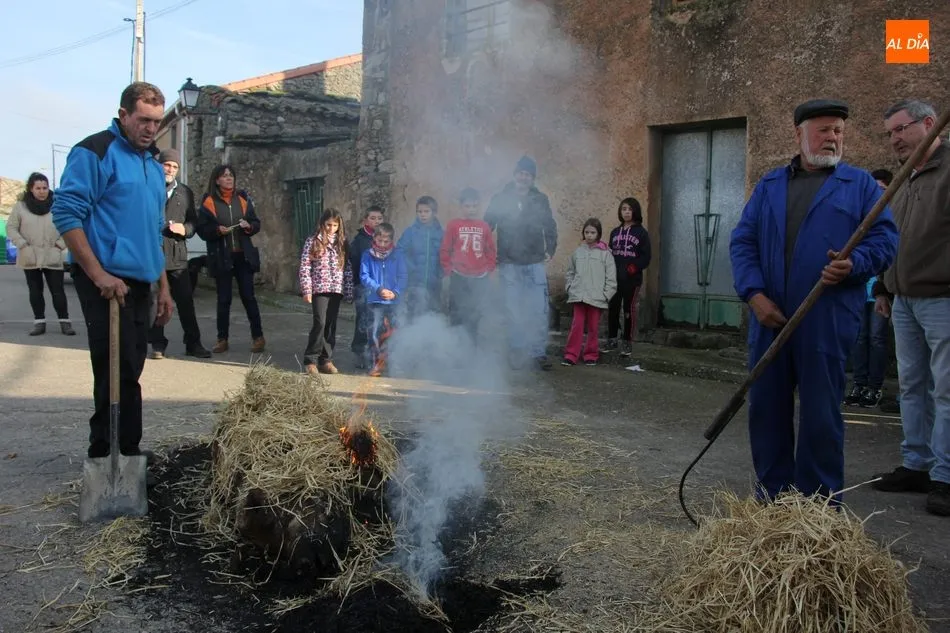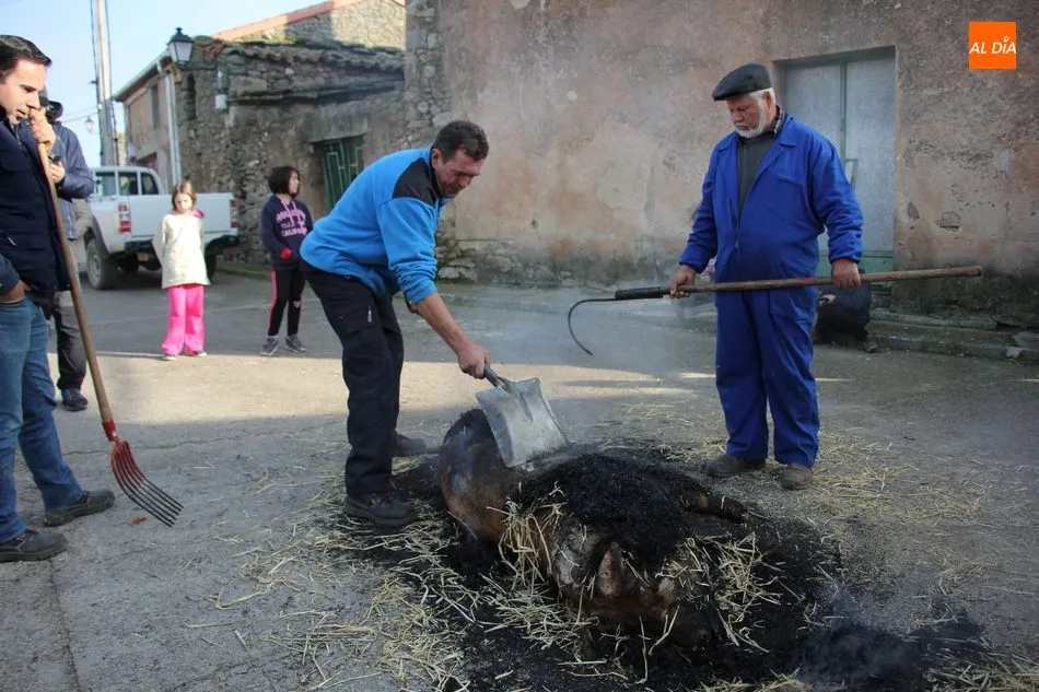 El broche a esta jornada matancera lo pondría una comida con la carne de la cochina a la brasa, todo un manjar con solo unos granos de sal y que sería el colofón a unos actos amenizados por el tamborilero de Vitigudino, Alejandro Hernández.