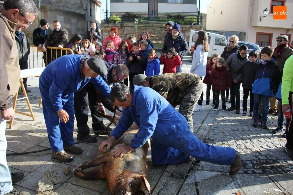 Aunque fuera del calendario provincial programado por la Diputación de Salamanca, en Sobradillo celebraban este día de la Constitución la segunda edición de su Matanza Tradicional, evento que tuvo como protagonistas a una marrana de unas 16 arrobas, y a Manolo y José, encargados de coordinar las labores matanceras, pues la mayoría de los vecinos presentes fueron partícipes de una forma u otra en esta II Matanza Tradicional.