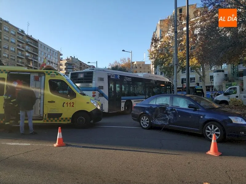 Un choque entre un autobús y un coche en la rotonda de la Plaza de España ha provocado esta tarde un aparatoso accidente que ha dejado una persona herida. Los servicios de emergencia se han desplazado hasta el lugar de los hechos para atender a la persona herida.