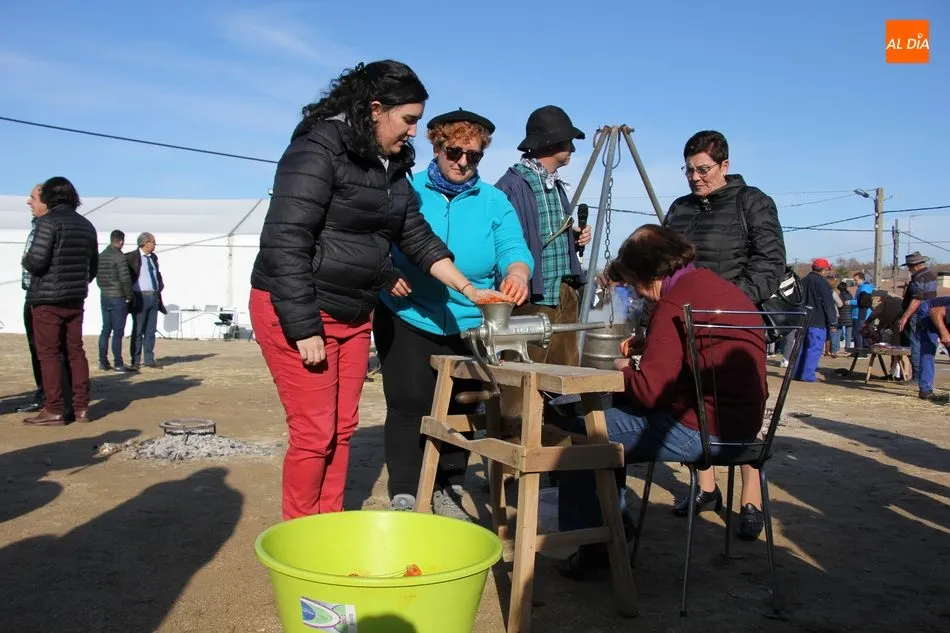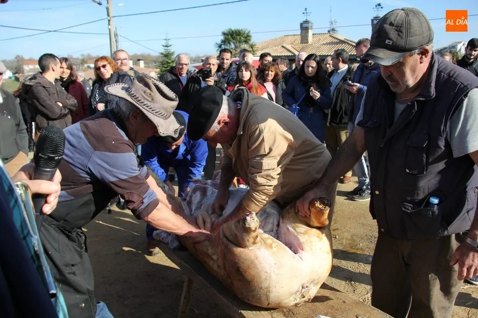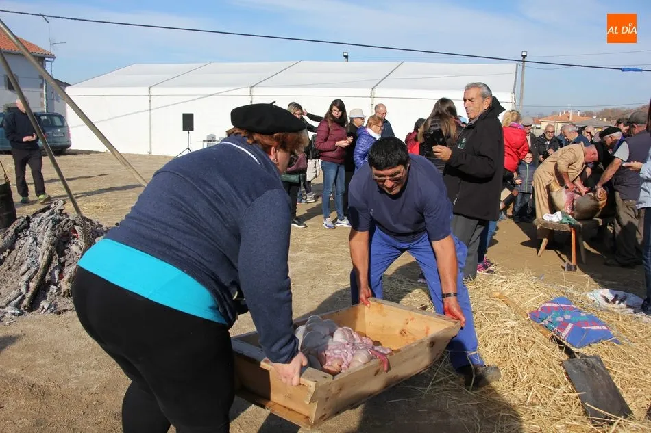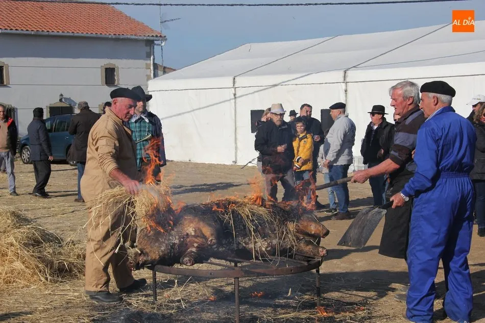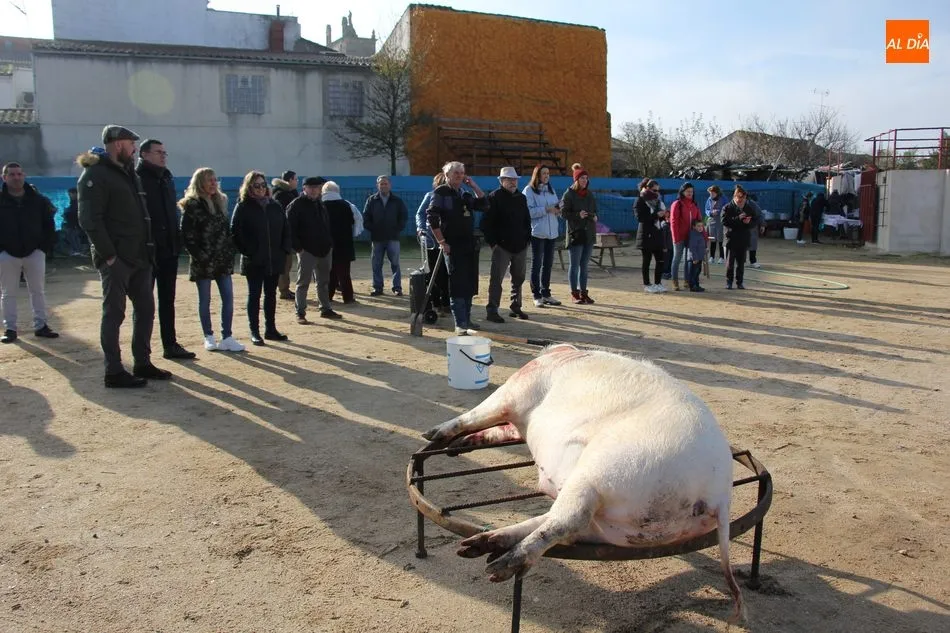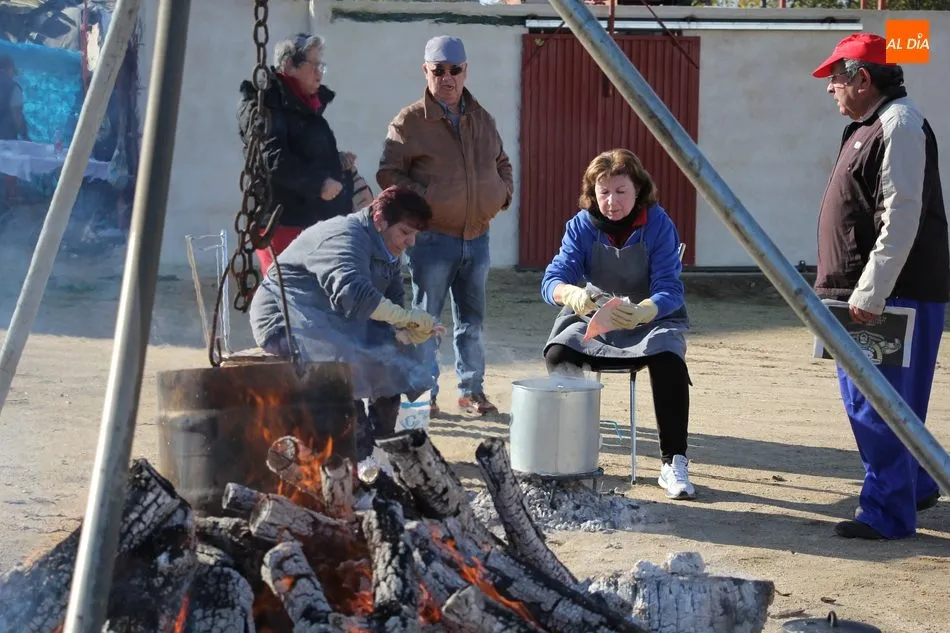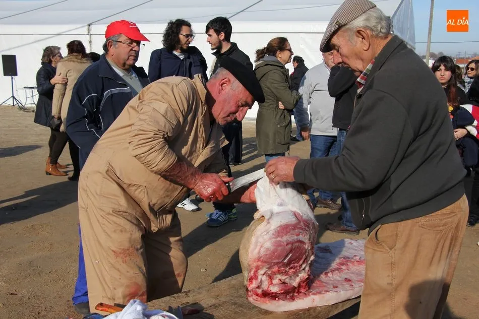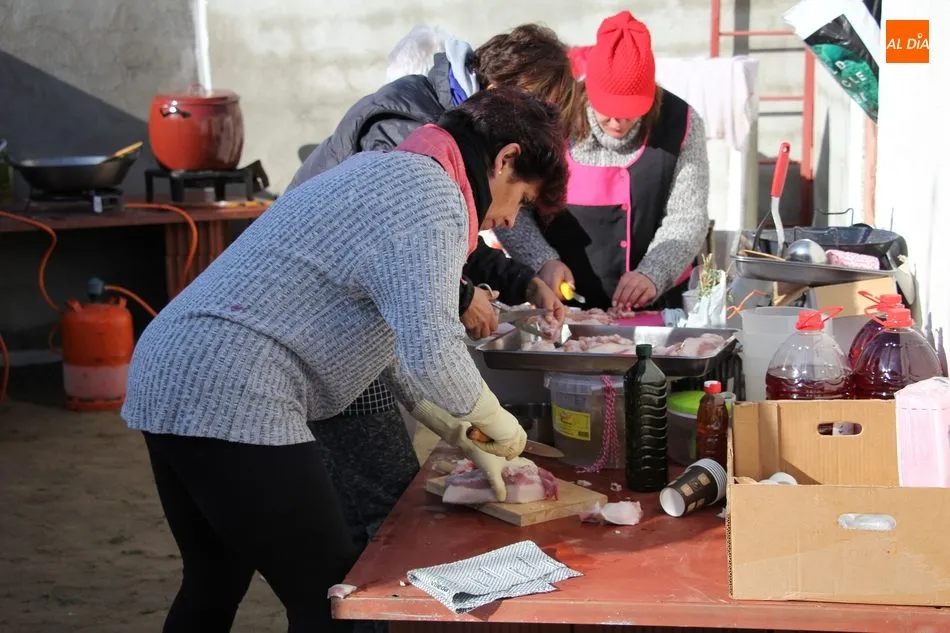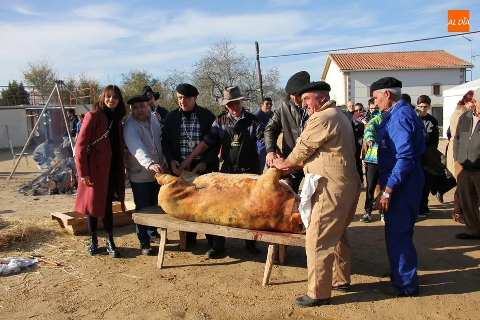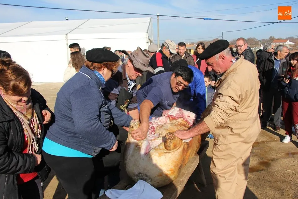 La otra protagonista de la jornada era una gorrina de 190 kilos, además del matarife Jesús Casado, encargado de dirigir las labores en torno a la marrana, pues de la comida, patatas meneás, chichas e hígado encebollado, se encargaban las mujeres de la Asociación María Magdalena, también con algunos de sus maridos. También fueron protagonistas el Maestro de Ceremonias, Fernando Luengo, y el tamborilero Jorge Lozano, ambos contratados por la Diputación con cargo al programa Fiesta de la Matanza Tradicional.