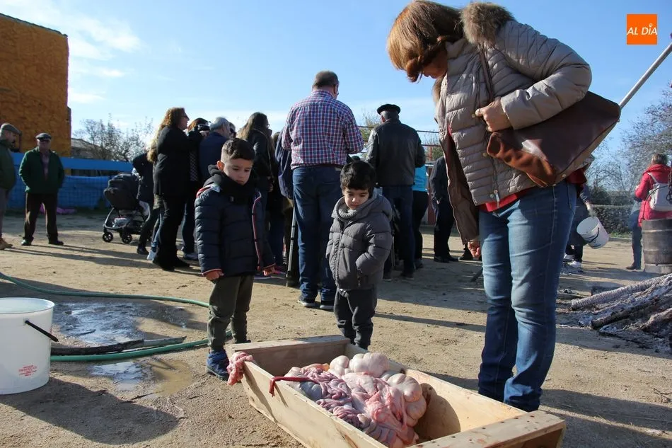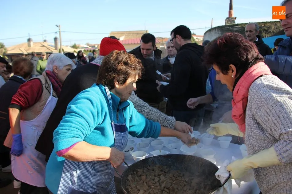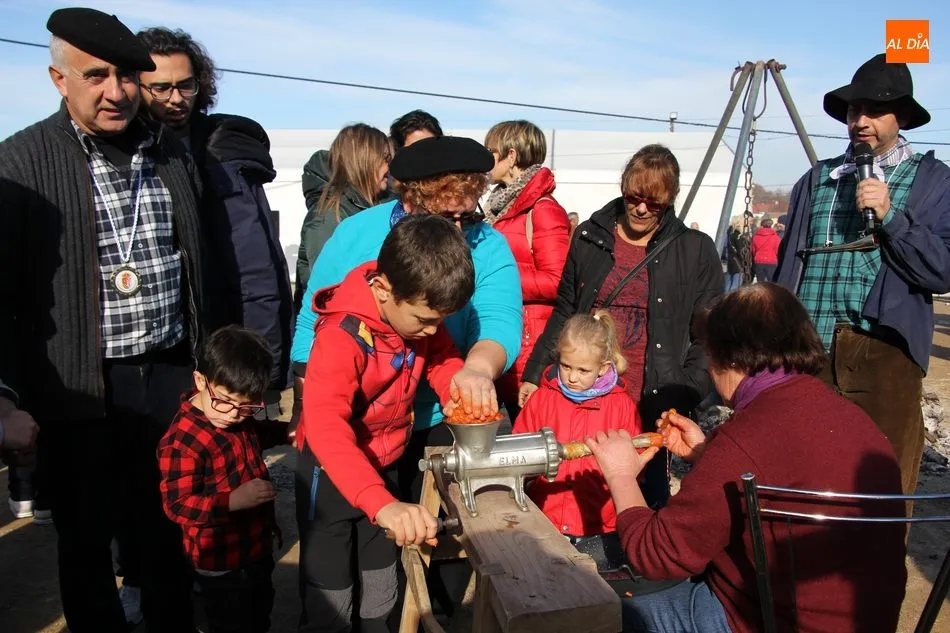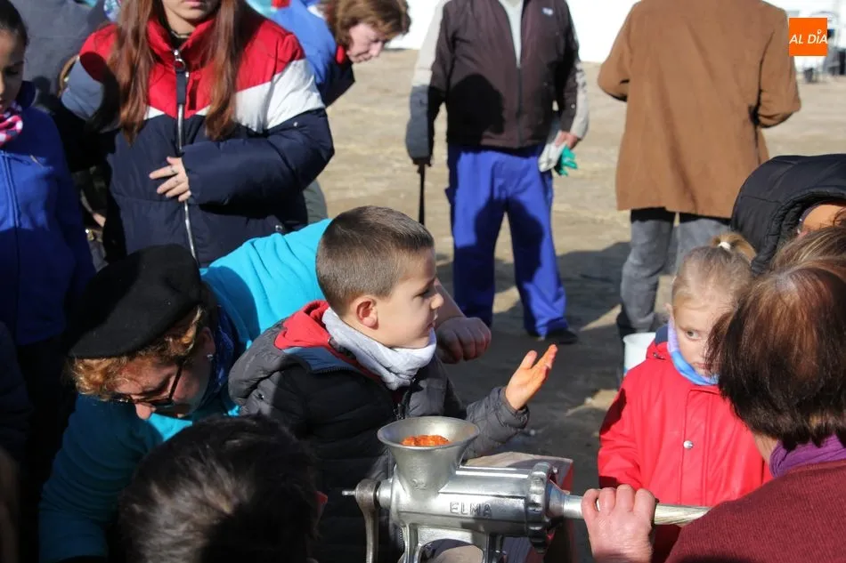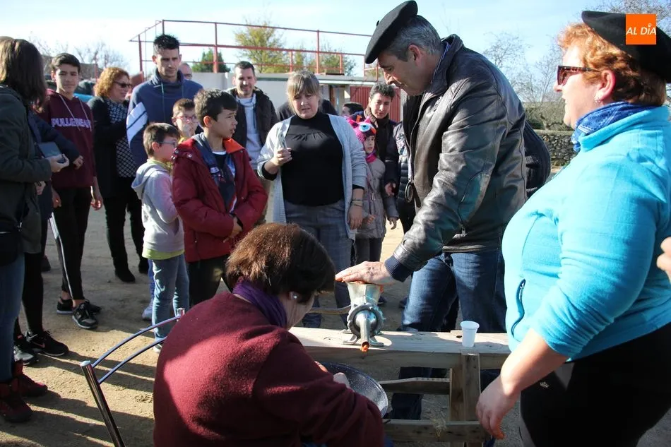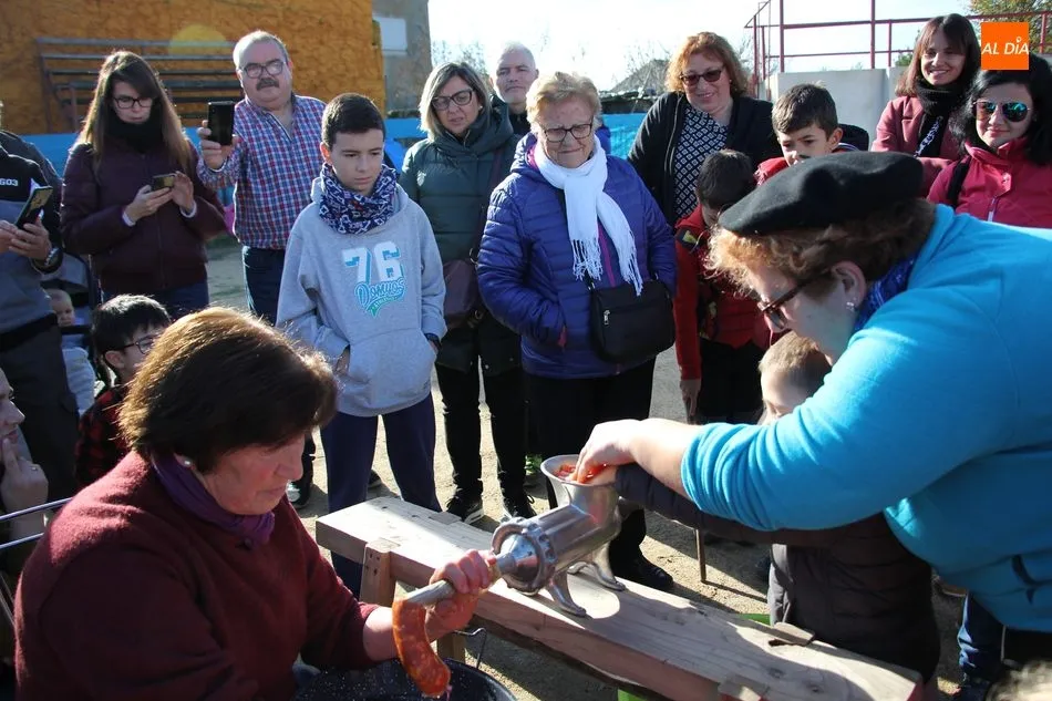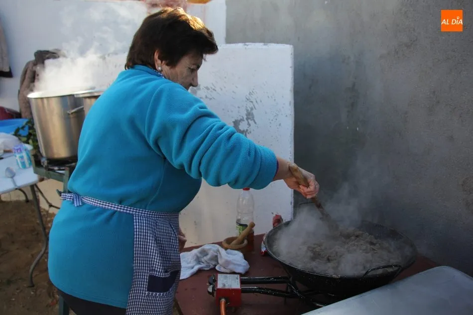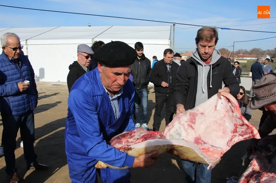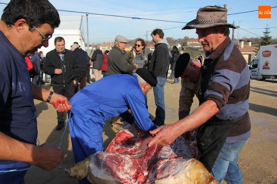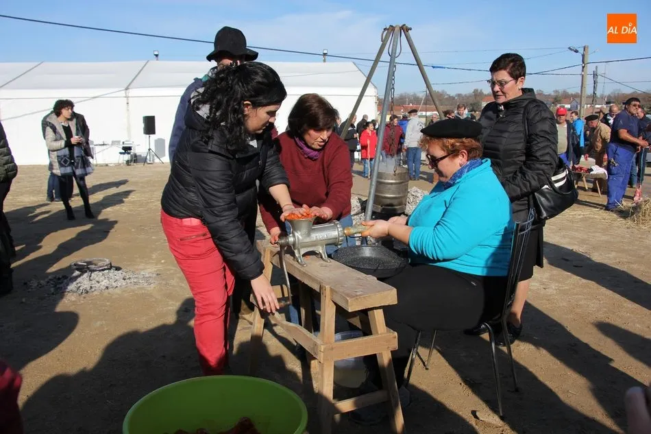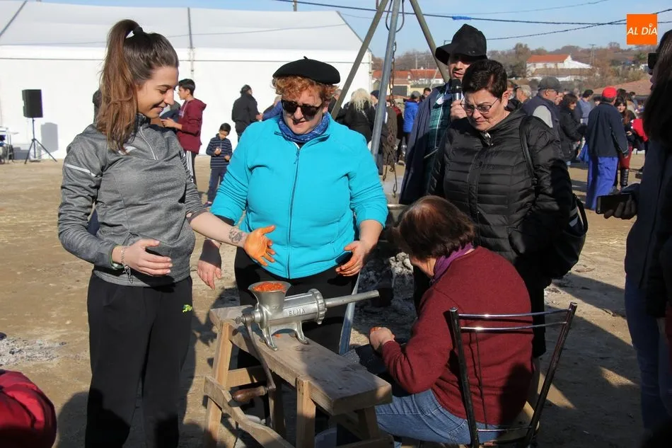 La otra protagonista de la jornada era una gorrina de 190 kilos, además del matarife Jesús Casado, encargado de dirigir las labores en torno a la marrana, pues de la comida, patatas meneás, chichas e hígado encebollado, se encargaban las mujeres de la Asociación María Magdalena, también con algunos de sus maridos. También fueron protagonistas el Maestro de Ceremonias, Fernando Luengo, y el tamborilero Jorge Lozano, ambos contratados por la Diputación con cargo al programa Fiesta de la Matanza Tradicional.