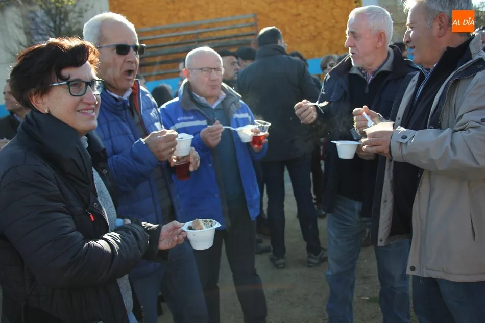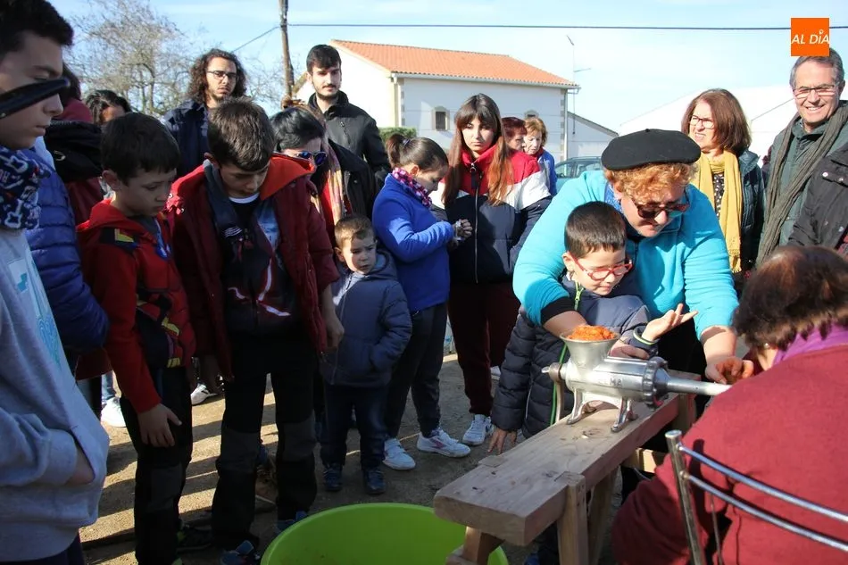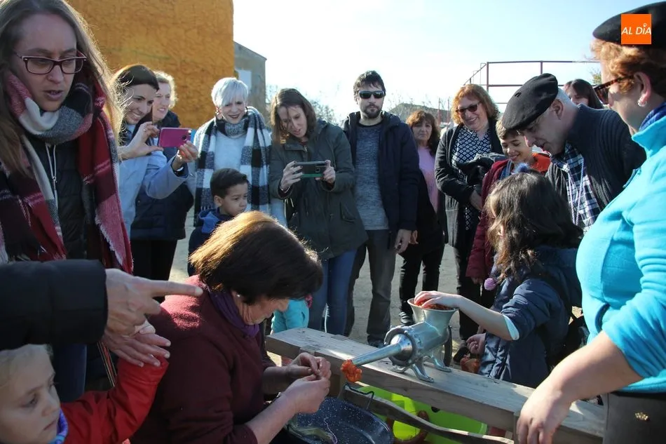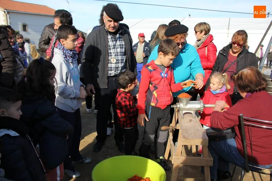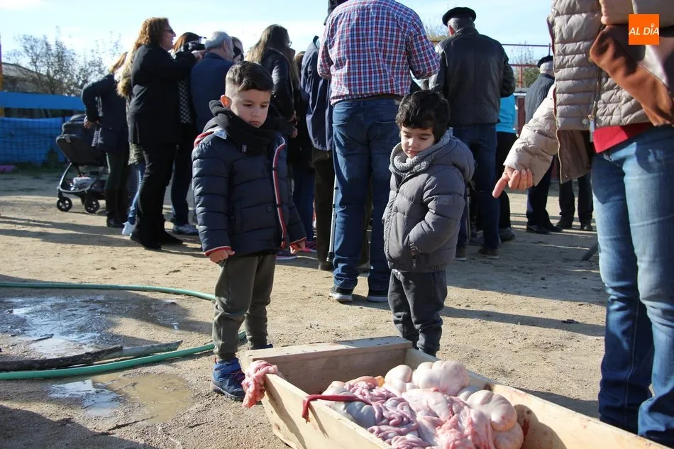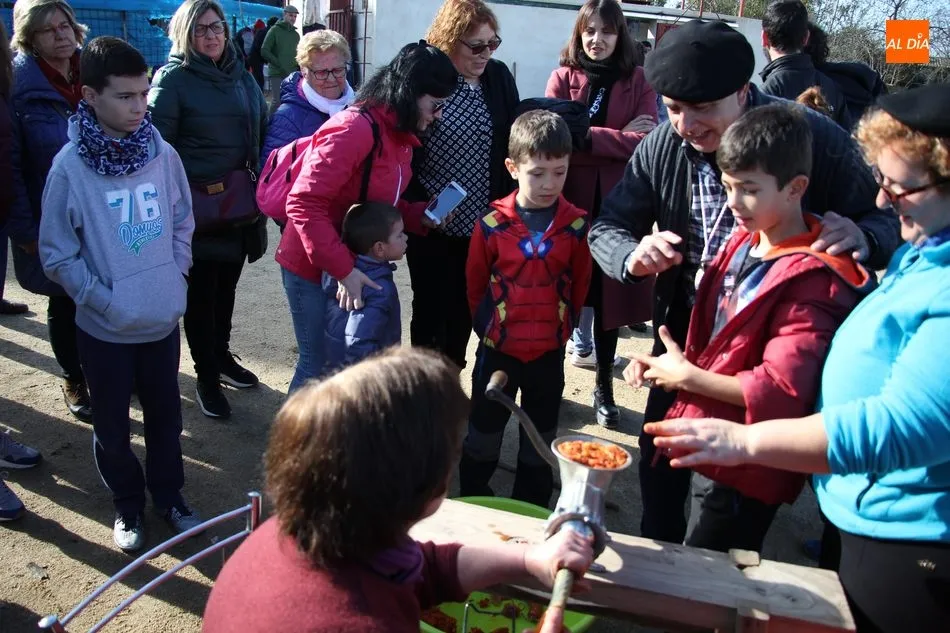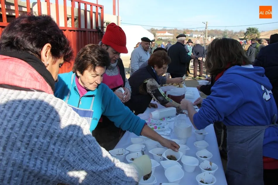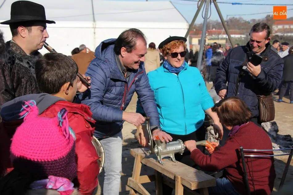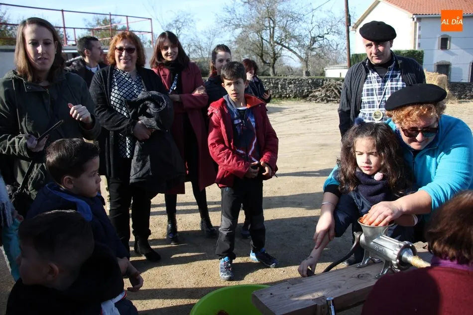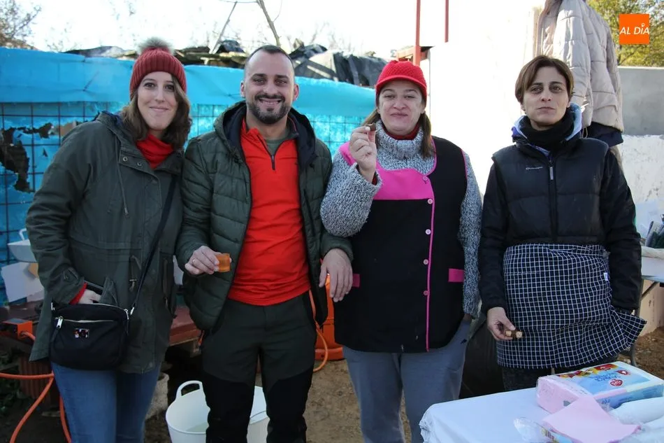 La otra protagonista de la jornada era una gorrina de 190 kilos, además del matarife Jesús Casado, encargado de dirigir las labores en torno a la marrana, pues de la comida, patatas meneás, chichas e hígado encebollado, se encargaban las mujeres de la Asociación María Magdalena, también con algunos de sus maridos. También fueron protagonistas el Maestro de Ceremonias, Fernando Luengo, y el tamborilero Jorge Lozano, ambos contratados por la Diputación con cargo al programa Fiesta de la Matanza Tradicional.
