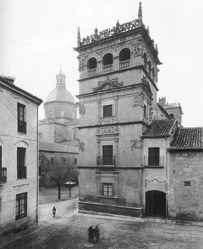 Las obras de su construcción debieron prolongarse en el tiempo por lo menos hasta 1565, pues en 1564 doña Inés manifestaba que no tenía casa dónde habitar en Salamanca, y ciertamente en este año ya se habría abandonado el proyecto primitivo que contemplaría un palacio torreado con patio central y amplio jardín hacia el campo de San Francisco.