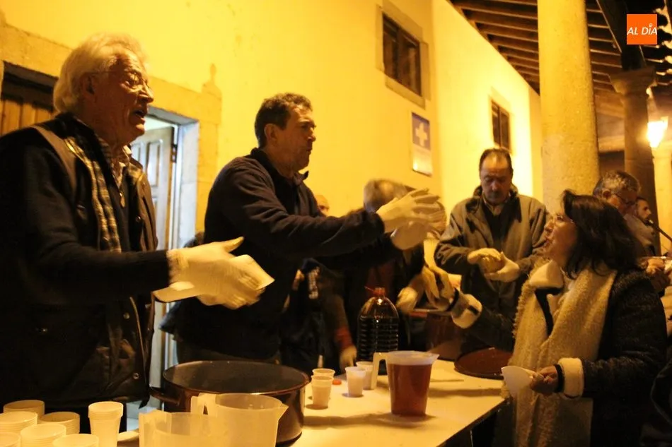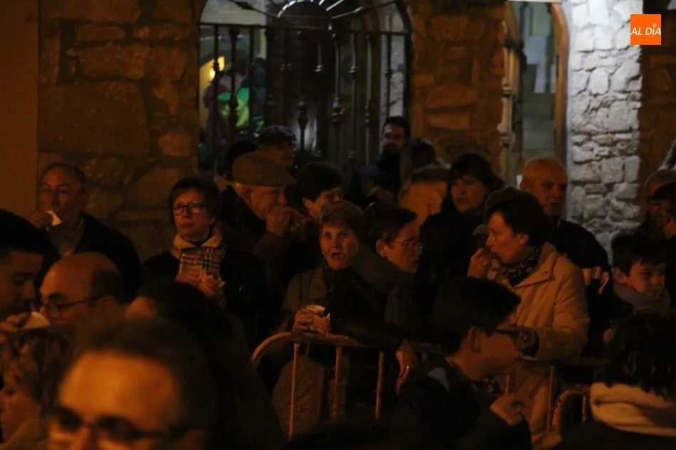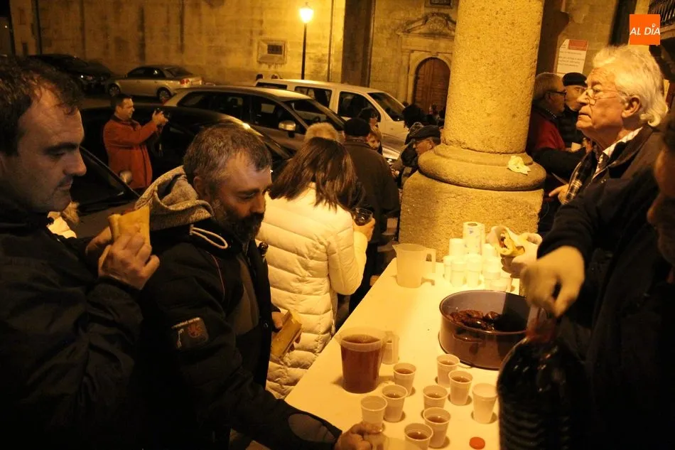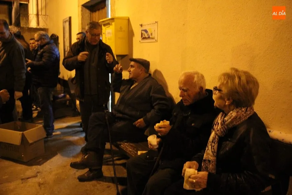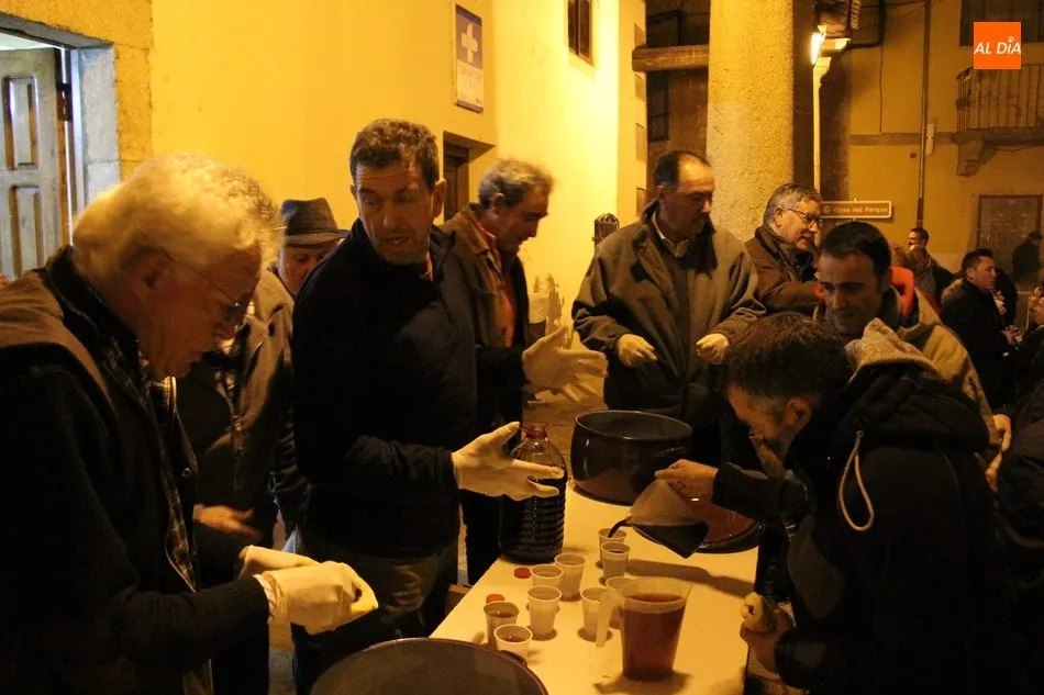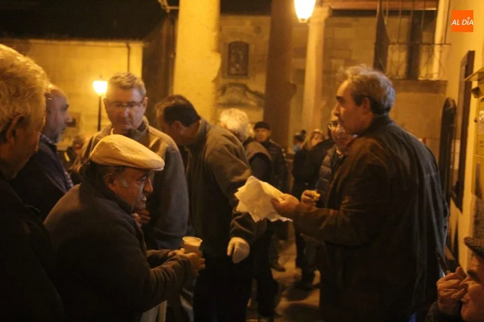 Pero antes de la capachera, el público se había congregado en la plaza del Ayuntamiento para dar cuenta de una degustación de chorizo y vino, chorizo hecho a la brasa metido en pan y que fue el reclamo para varios cientos de personas, sin necesidad de maridajes ni fusión de sabores ni modernos show cooking. El único elemento animador en la degustación eran las tonadas de Alejandro Hernández, tamborilero de Vitigudino y que fue el encargado de amenizar la velada.
