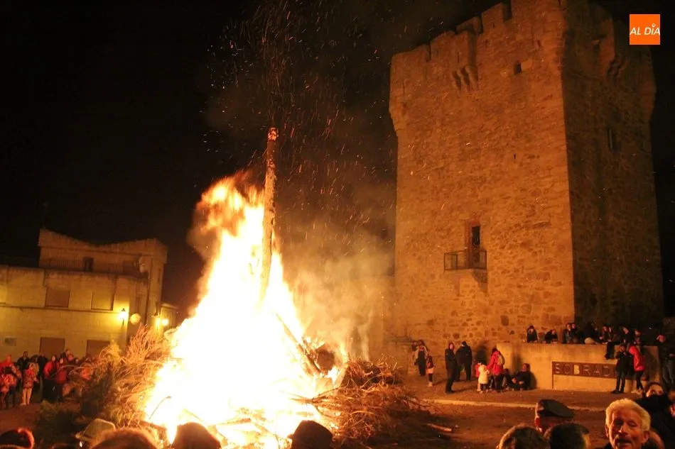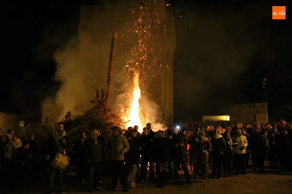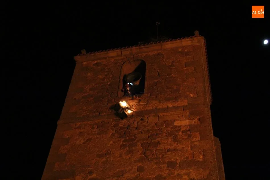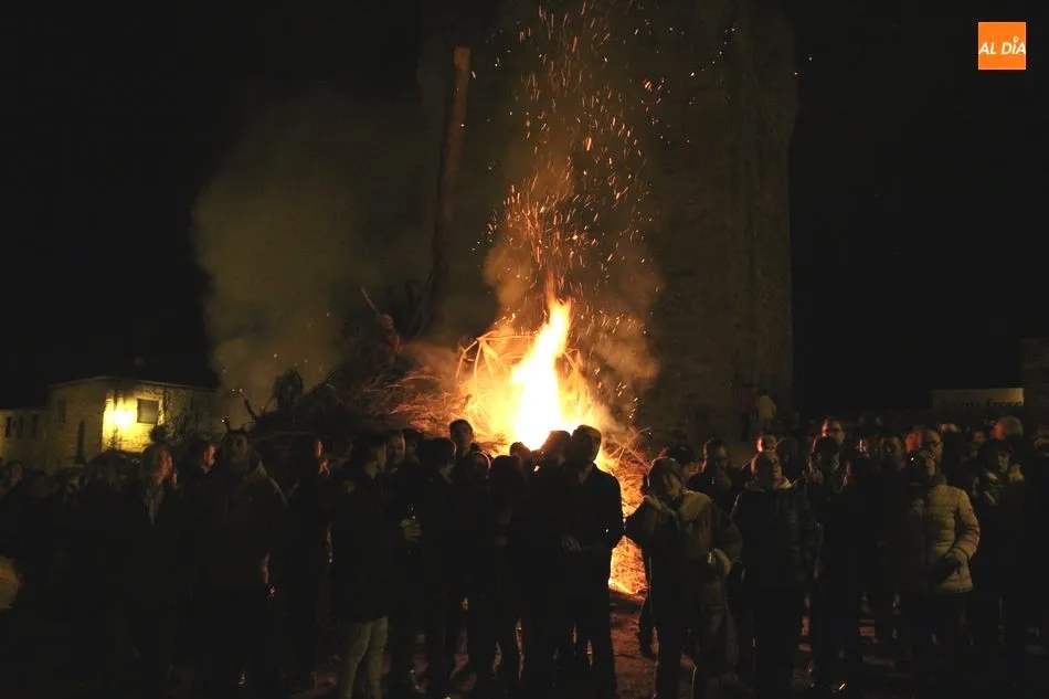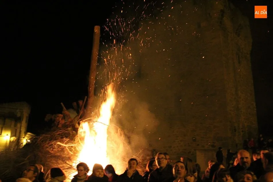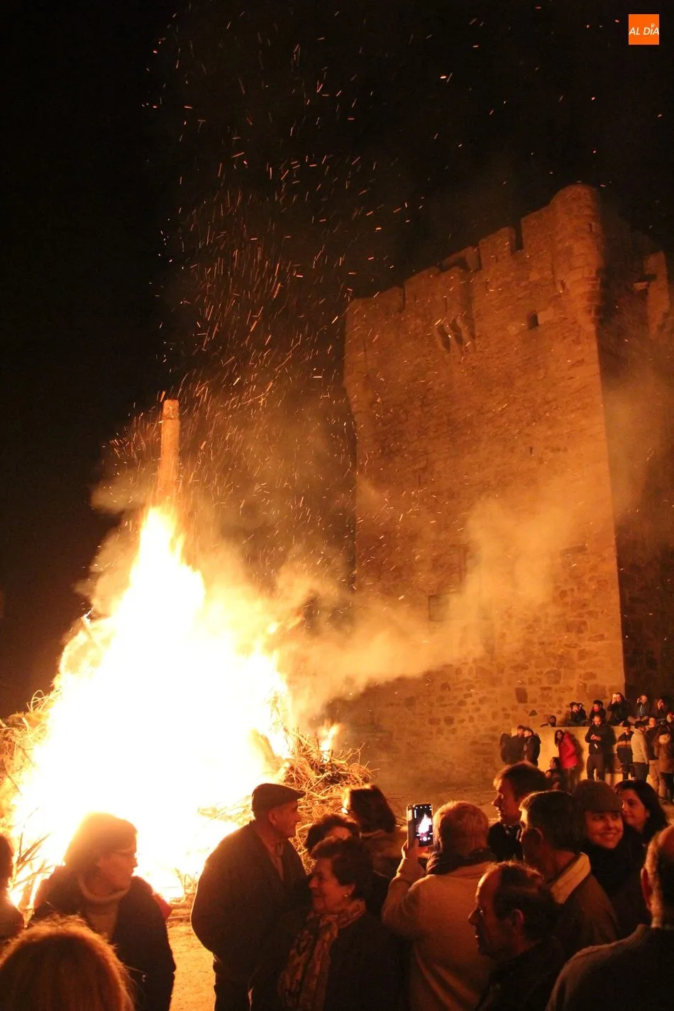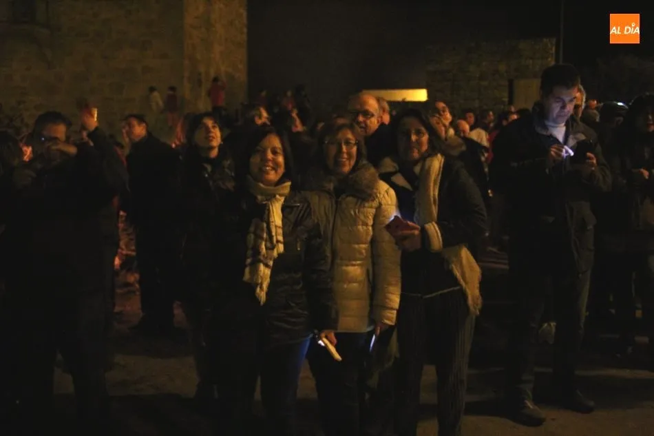 Así las cosas, la hoguera prendida en homenaje a los quintos Santiago Marqués, Laura Hernández, Georgina Martínez y José Luis Martín, iluminaba en la noche oscura la fachada sur de la torre del castillo, lugar desde donde el público presenciaba la tibia llama que salía de los capachos y que con el movimiento en el aire iba a menos hasta desfallecer.