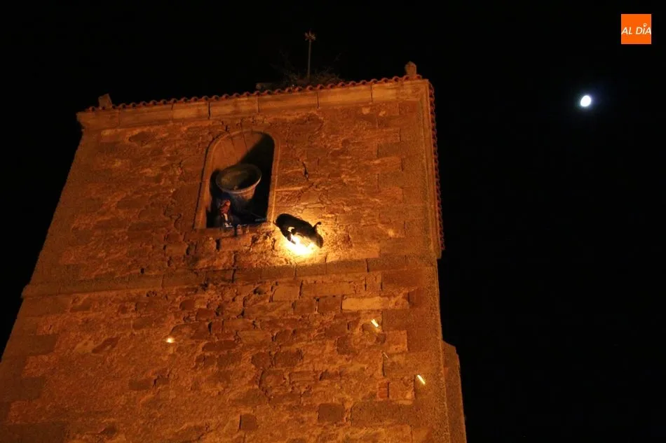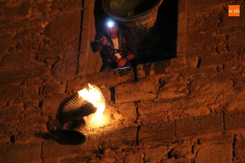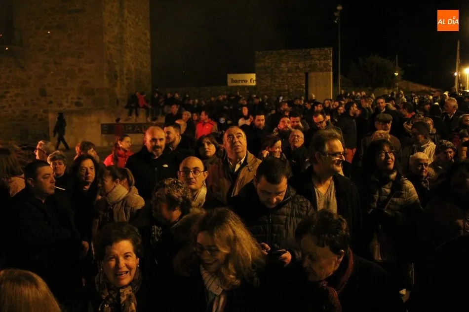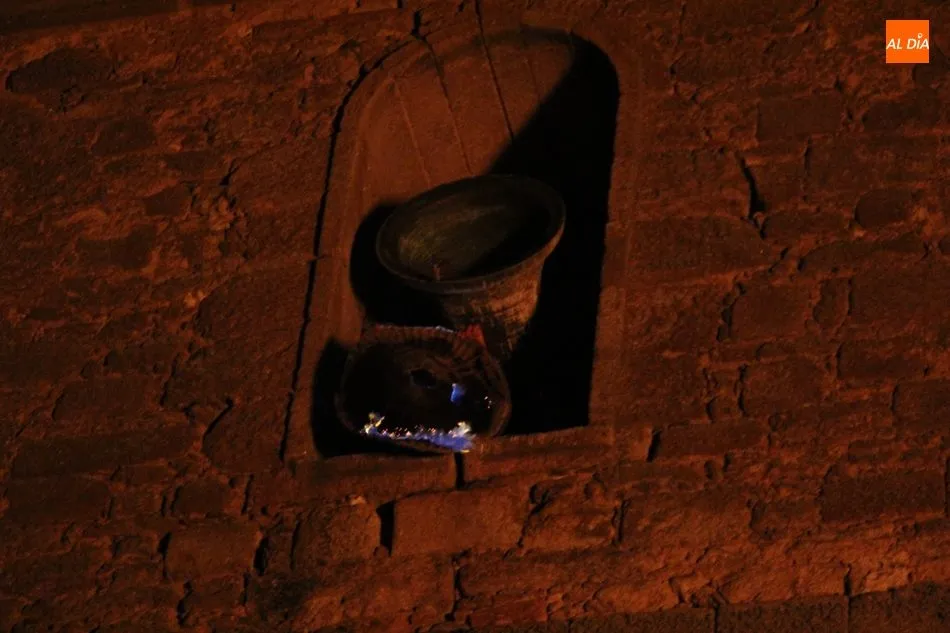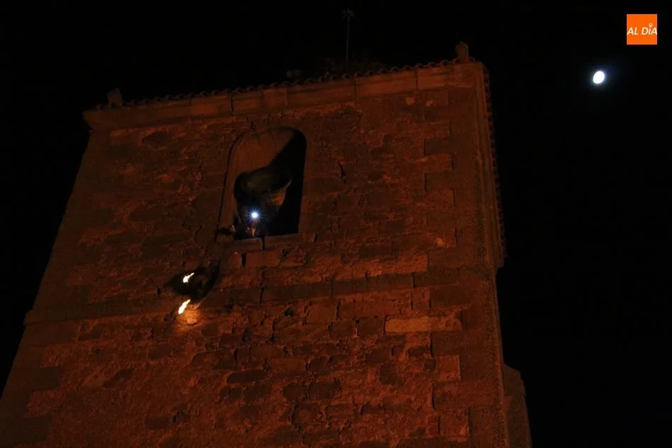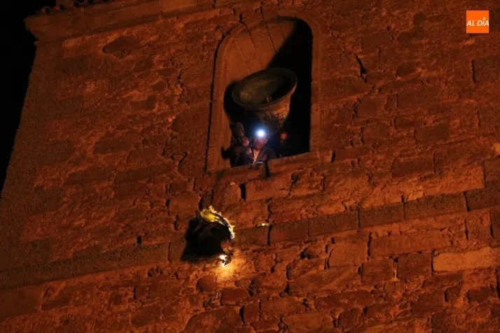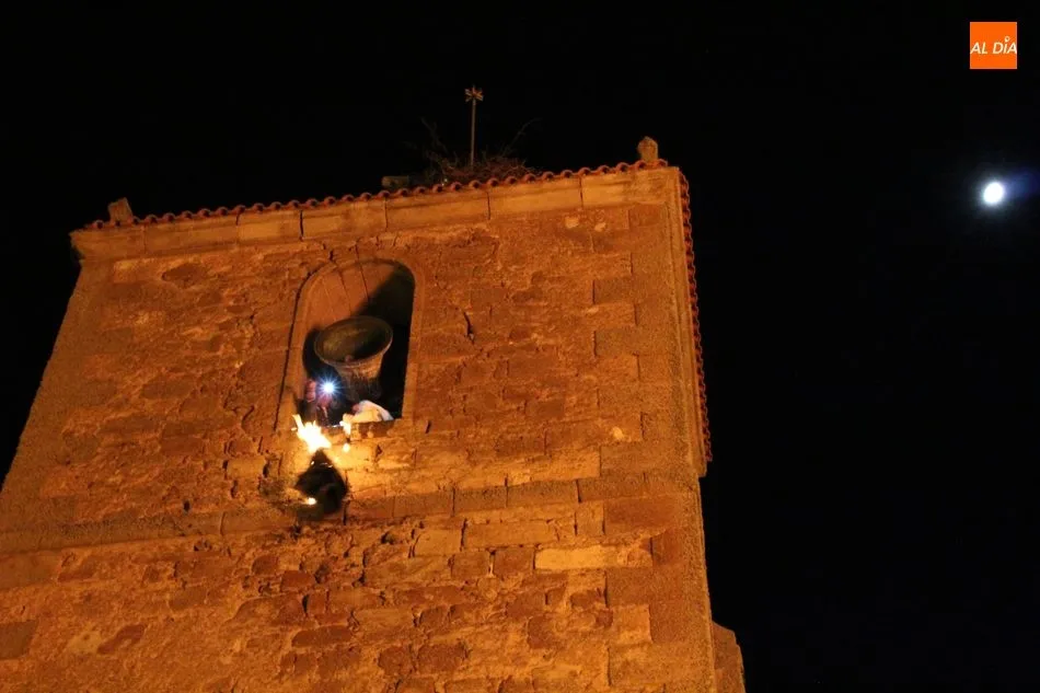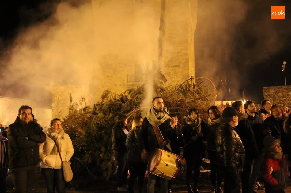 Así las cosas, la hoguera prendida en homenaje a los quintos Santiago Marqués, Laura Hernández, Georgina Martínez y José Luis Martín, iluminaba en la noche oscura la fachada sur de la torre del castillo, lugar desde donde el público presenciaba la tibia llama que salía de los capachos y que con el movimiento en el aire iba a menos hasta desfallecer.