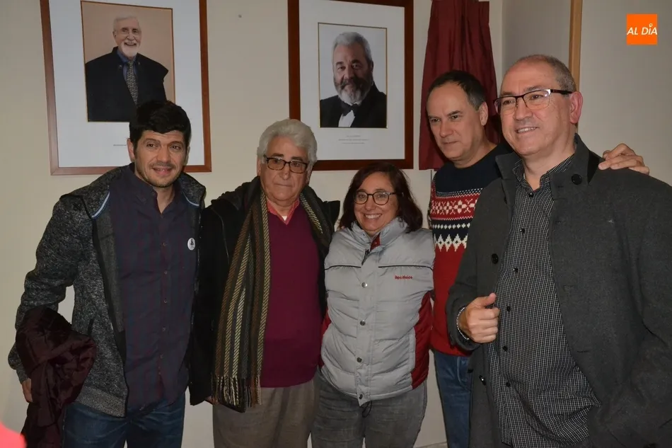 Con el público ya desalojando el Teatro Nuevo tras brindar de pie un último gran aplauso, tuvo lugar en los pasillos de la planta baja el descubrimiento de una fotografía de José Pinto en la galería de retratos de los pregoneros mayores del Carnaval. A continuación, unos cuantos mirobrigenses que habían asistido al acto, así como los miembros del Equipo de Gobierno, aprovecharon para sacarse fotos con los miembros de Los Lobos, que se mostraron encantadores con todos aquellos que quisieron saludarles en una tarde tan especial y emotiva.