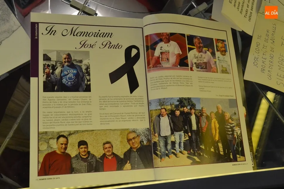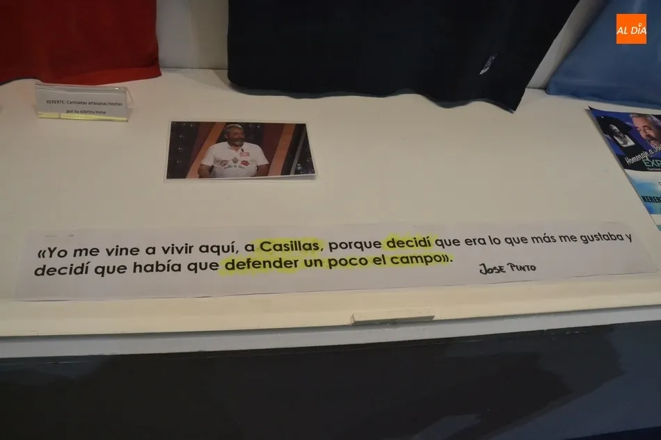 La exposición ha sido montada por la propia familia de José Pinto, explicando en la inauguración una de sus sobrinas, Irene, que la parte dedicada a las camisetas tiene tres grandes ejes: su pueblo, Ciudad Rodrigo y el resto de la comarca, y las causas solidarias (?no había una semana que no acudiera a alguna?). Según señaló, su tío ya tenía en mente ?hacer algo? (una exposición, una subasta,...) con sus camisetas, que fueron ?una forma de dar visibilidad al campo y a la comarca?.