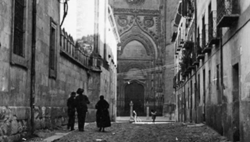 Calle Calderón de la Barca en tiempos pasados y donde en una de ellas se puede apreciar la "parra" cantada por D. Miguel de Unamuno.