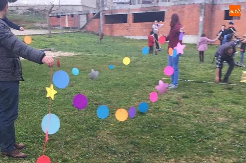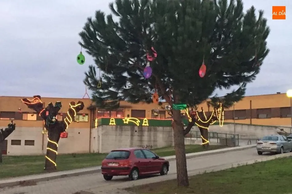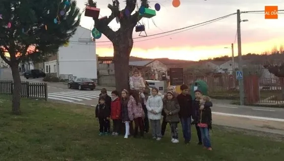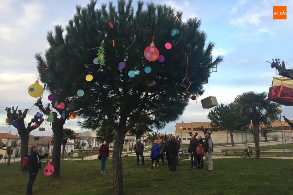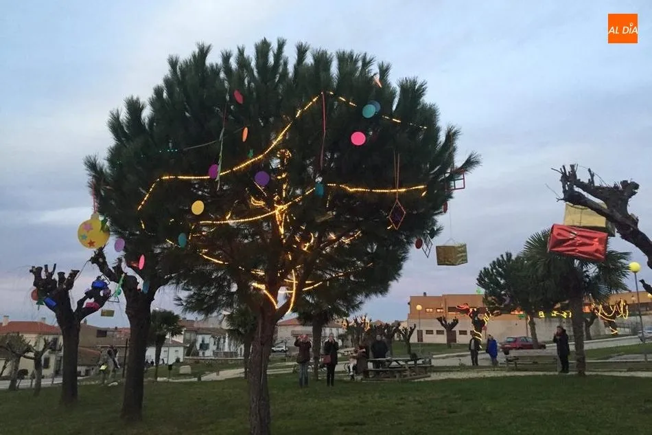 Los niños de Villarino de los Aires, puerta de entrada al Parque Natural Arribes, procedieron este lunes a la colocación de los adornos navideños realizados en el taller de manualidades al que asistieron el pasado sábado. El parque de la residencia de mayores coge así todo el color de Navidad, a lo que también ha contribuido el encendido navideño instalado por el Ayuntamiento.