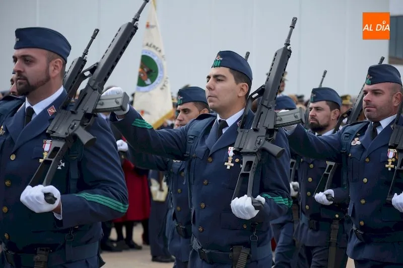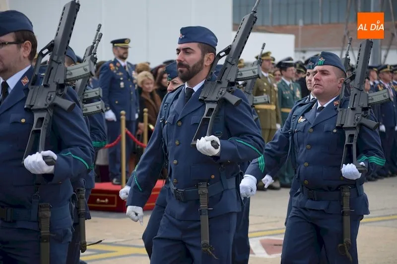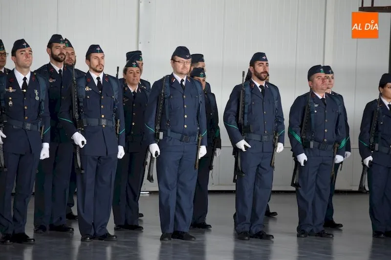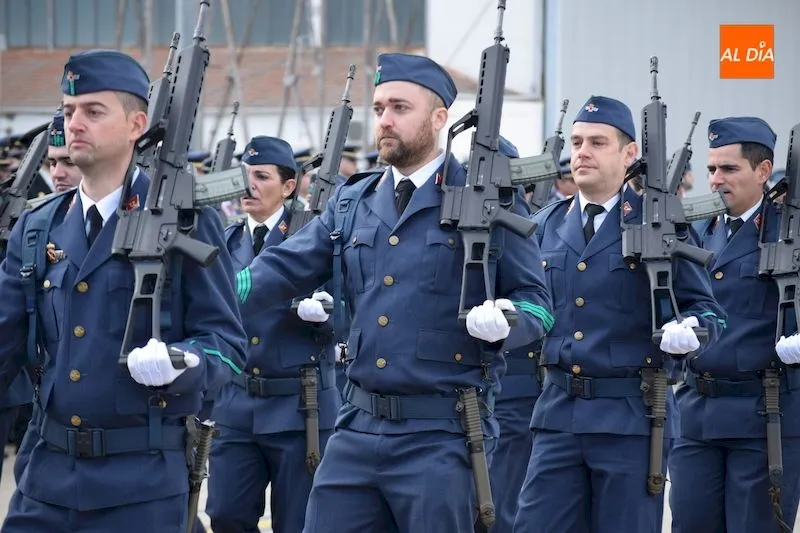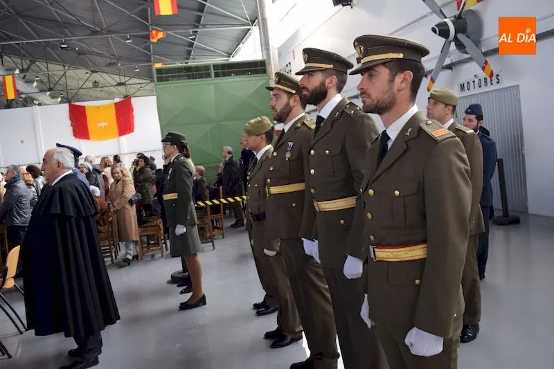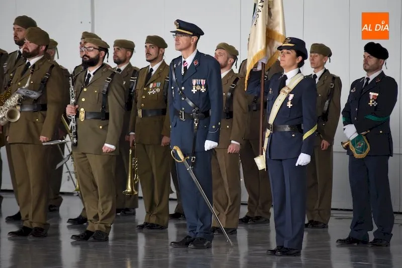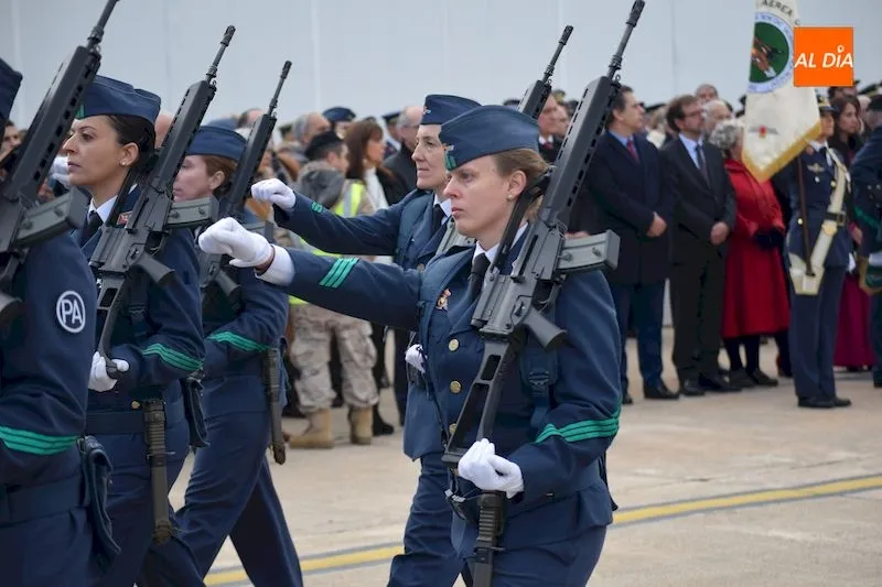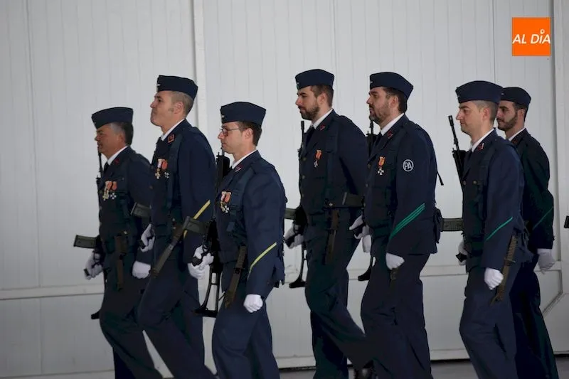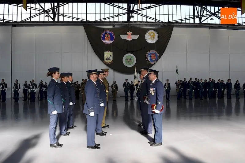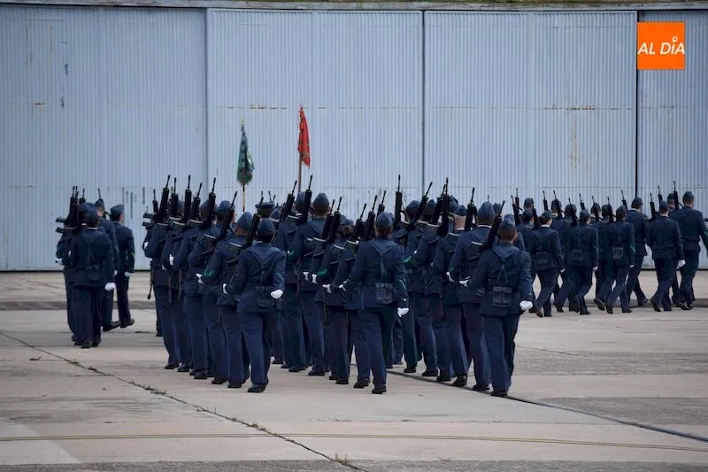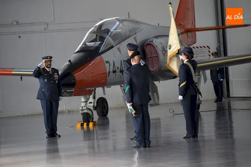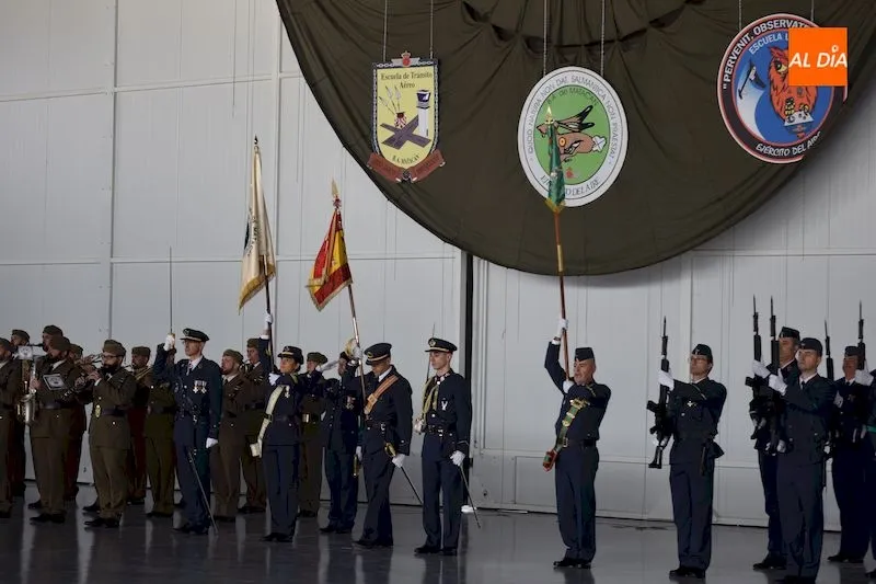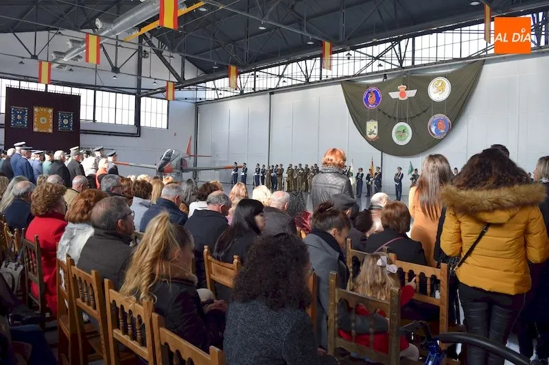 Previamente al desfile, el Coronel Carlos María Bernardo Anaya, jefe de la Base Aérea de Matacán, recordó ?en un día de agradecimiento y celebración por la festividad de su patrona? el trabajo realizado durante todo el año por el Grupo de Escuelas de Aviación de Matacán, rememorando que ?se acogen a más de 300 alumnos y que tienen lugar más de 4.000 horas de vuelo?.