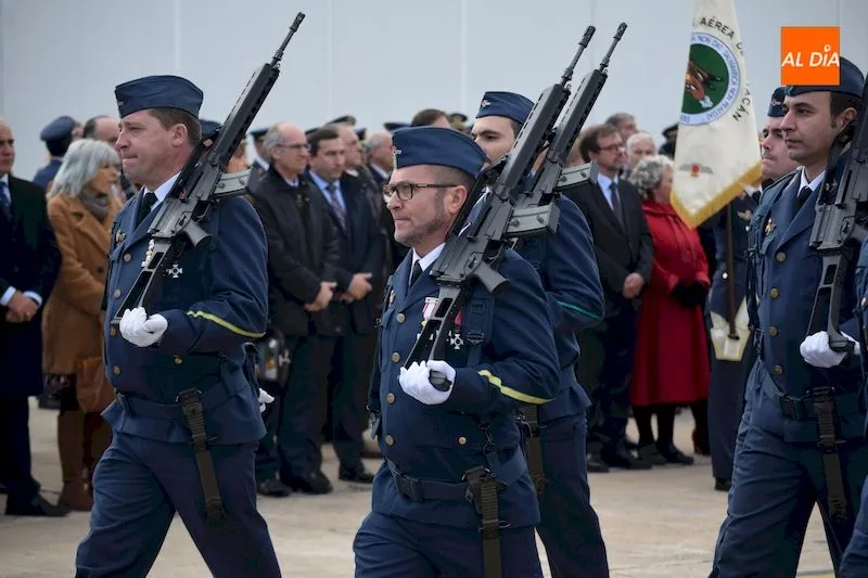 La Base Aérea de Matacán celebró esta mañana la festividad de la Virgen de Loreto con desfiles y condecoraciones a los que acudieron numerosas autoridades civiles y militares de la base, de la provincia charra y de la ciudad de Salamanca. Entre las autoridades se encontraban el alcalde de Salamanca, Carlos García Carbayo; el presidente de la Diputación de Salamanca, Javier Iglesias; o la Subdelegada del Gobierno en Salamanca, Encarnación Pérez Álvarez.