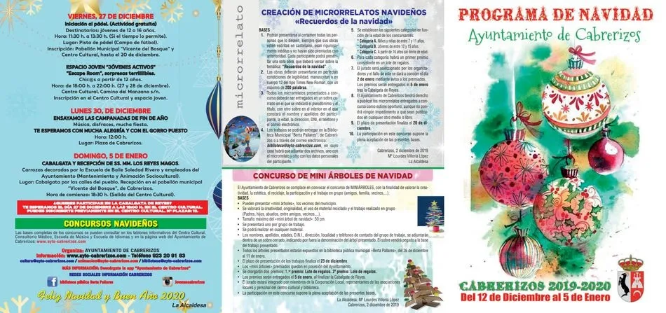 La alcaldesa de Cabrerizos, Lourdes Villoria, ha presentado este jueves el programa de actividades relacionadas con las fiestas navideñas, que promueve el Ayuntamiento. Aunque hay iniciativas para todos los públicos, uno de los principales objetivos es crear un ocio alternativo y saludable para los jóvenes.