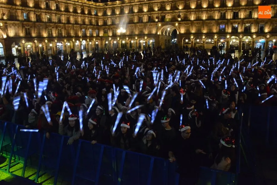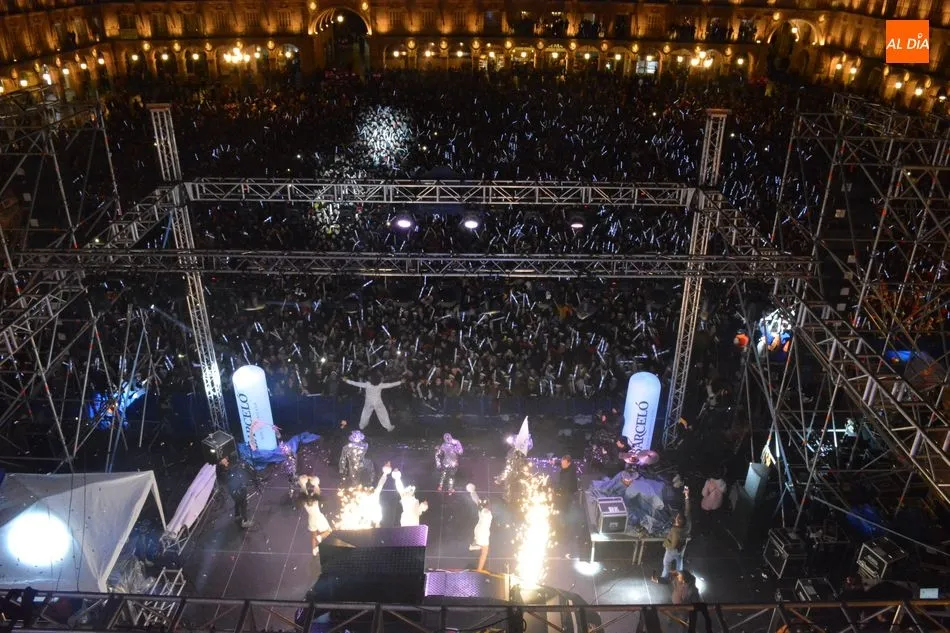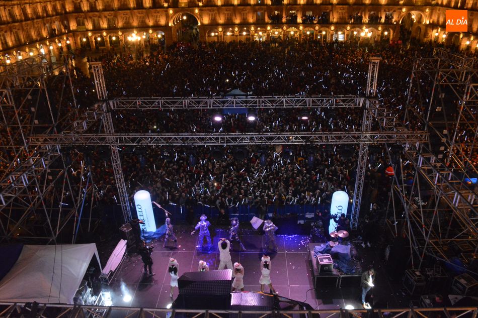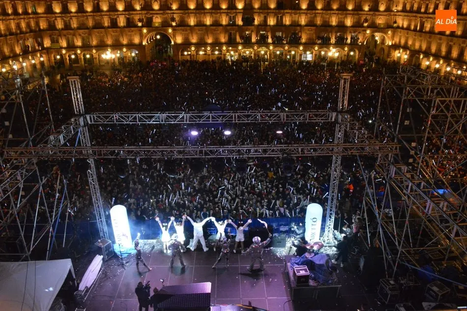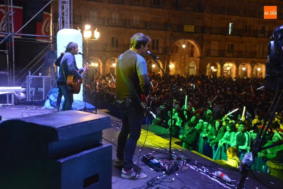 El grupo Despistaos, el DJ y youtuber Luc Loren, Alexander Som, Yasiris y Robert Morr fueron los protagonistas del Fin de Año Universitario de Salamanca, en un acto que tuvo su punto álgido con las campanadas de medianoche pero que, previamente y en los momentos inmediatamente posteriores, contará con actuaciones musicales desde las 20.00 horas en la Plaza Mayor.