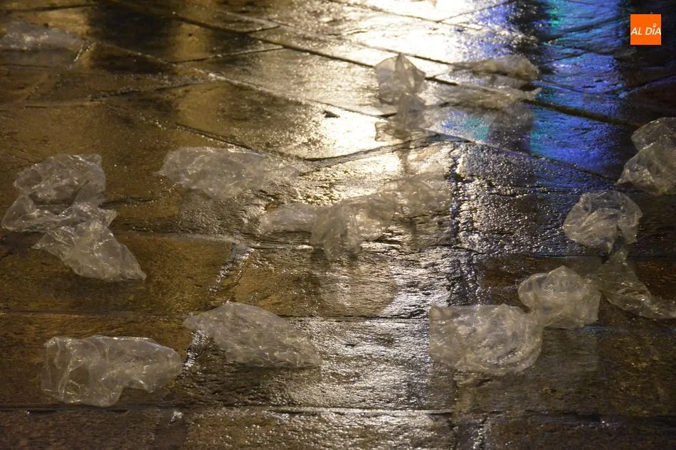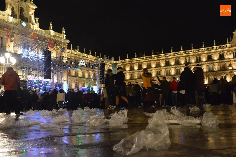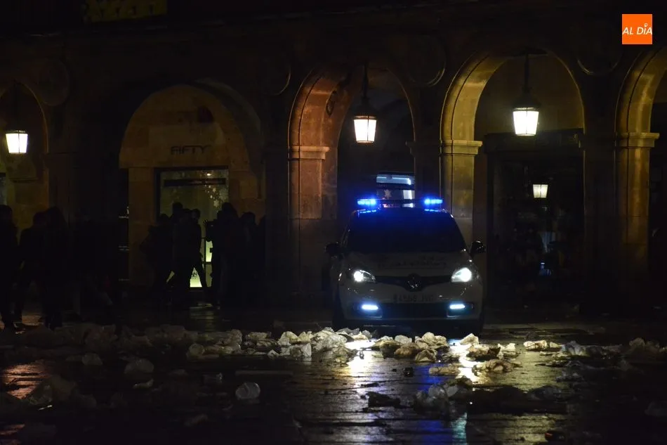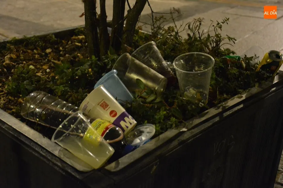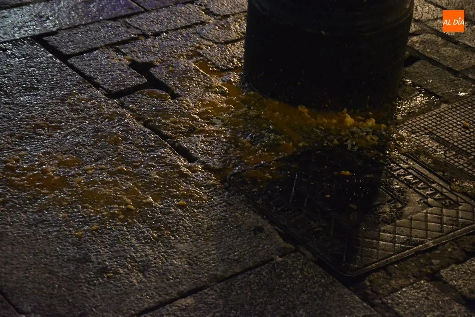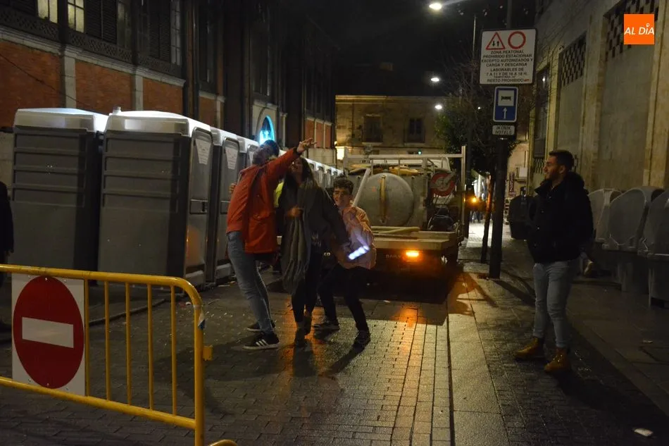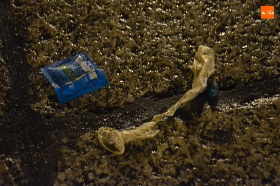 Tan tradicional como la fiesta es ver cómo uno de los mayores monumentos de la capital charra acaba lleno de botellas y diversos productos que empañan una celebración que divierte a más de 20.000 jóvenes cada año, lo que obliga a los servicios de limpieza a emplearse a fondo para eliminar el rastro del evento.