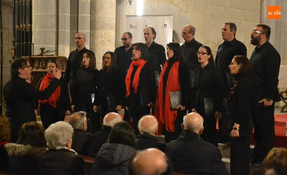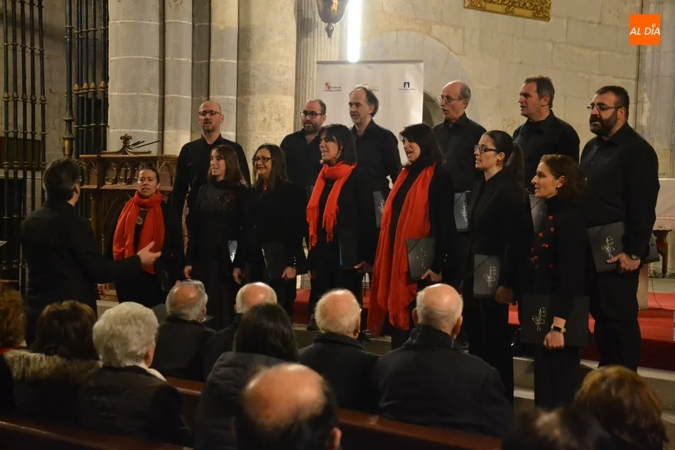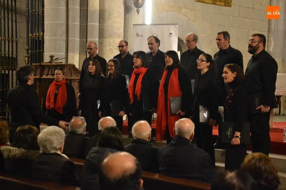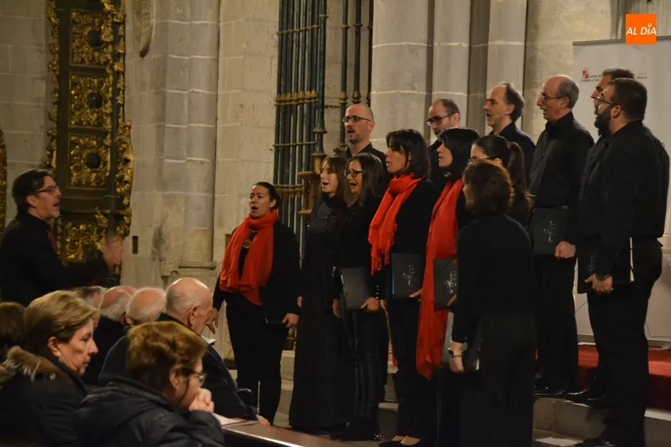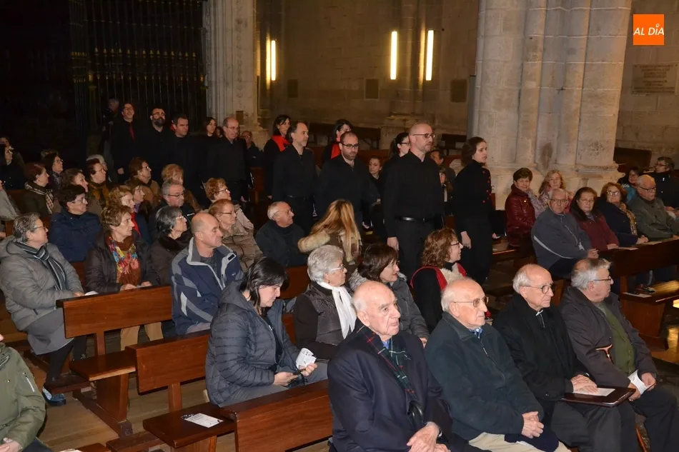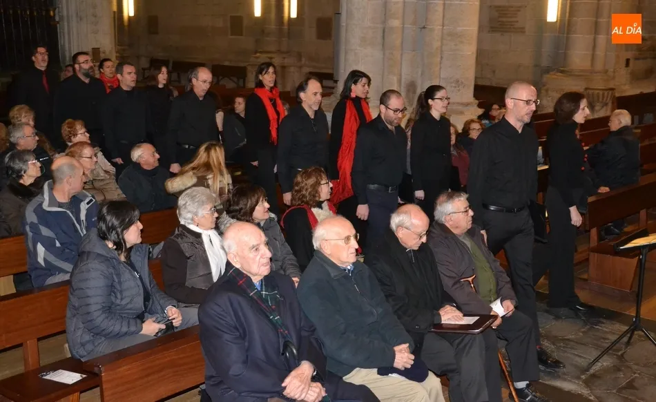 Esta actuación se produjo en la escalinata del Altar Mayor, arrancando eso sí en el Coro, desde donde se dirigieron a la mencionada escalinata según interpretaban la primera pieza. El Coro, dirigido por Valentín Benavides, interpretó tanto temas religiosos (como Christi Notre Père, Ave verum, o Prayer of St. Francis) como canciones populares (Todo quanto pudo dar, Si la nieve resbala, o A tu lado). El concierto tuvo en primera fila al administrador apostólico de la Diócesis, Jesús García Burillo.
