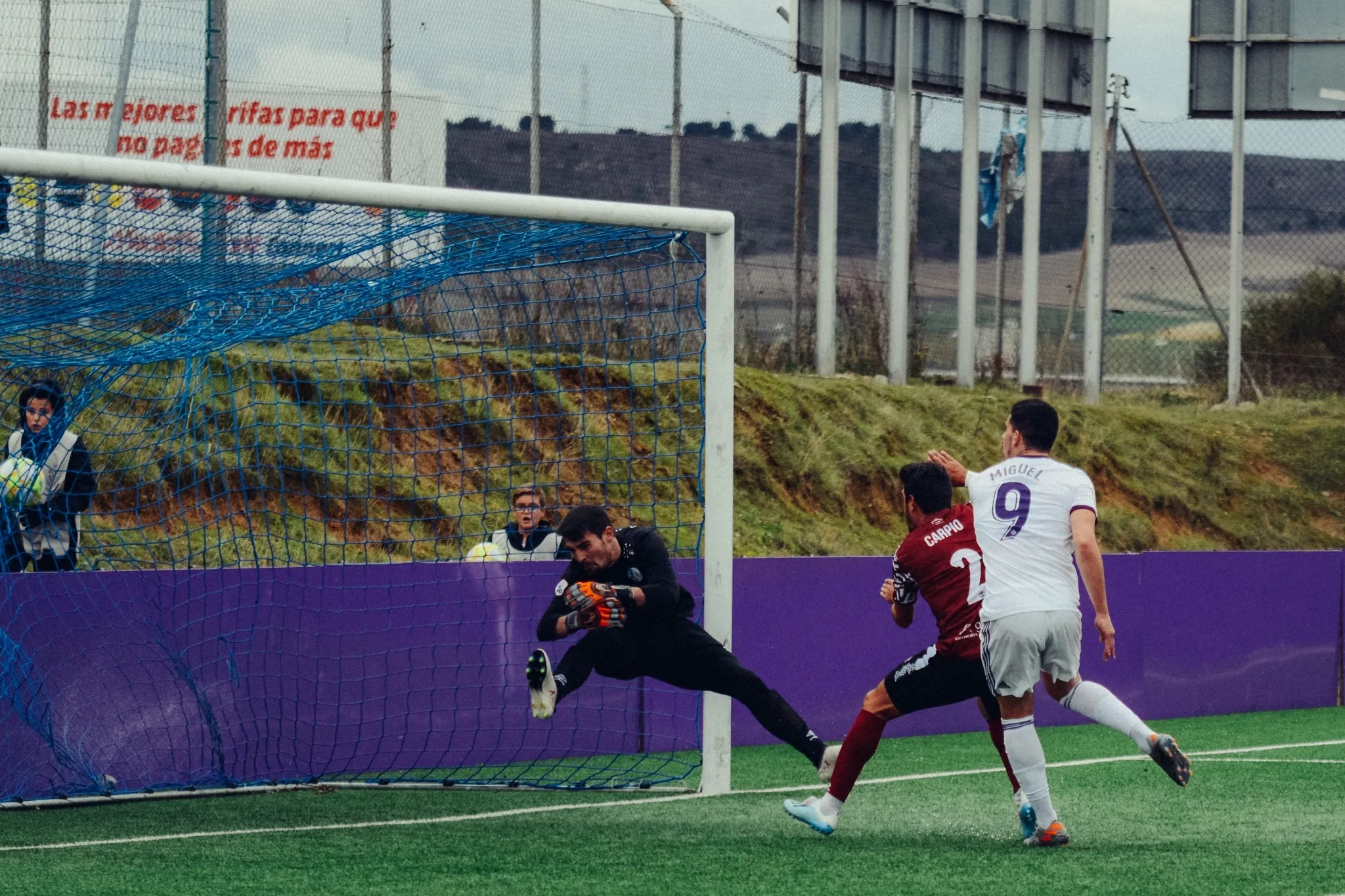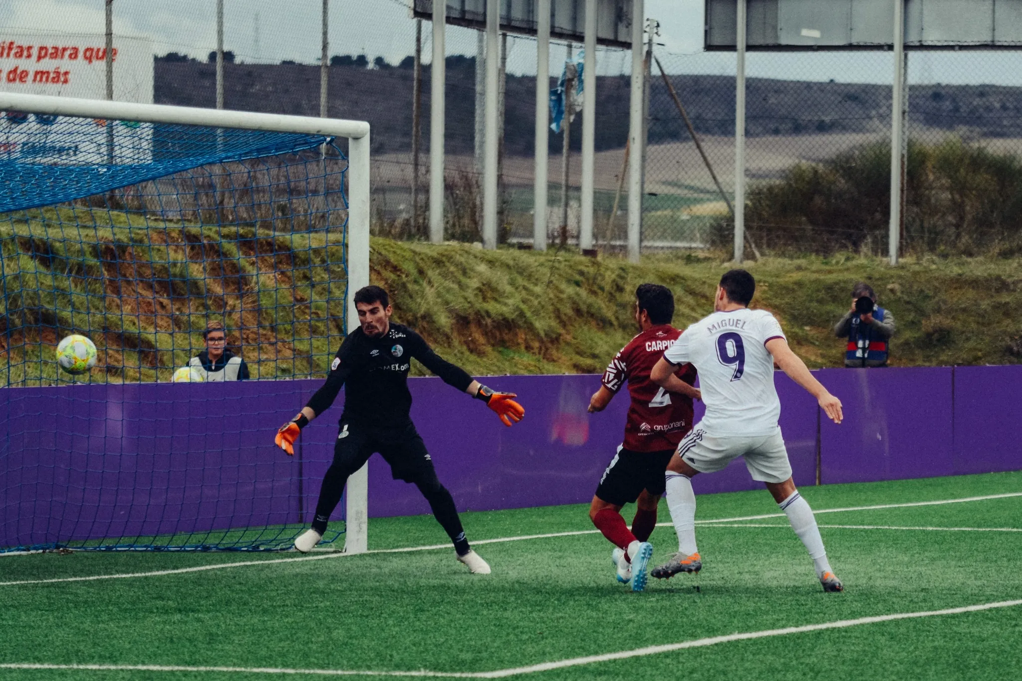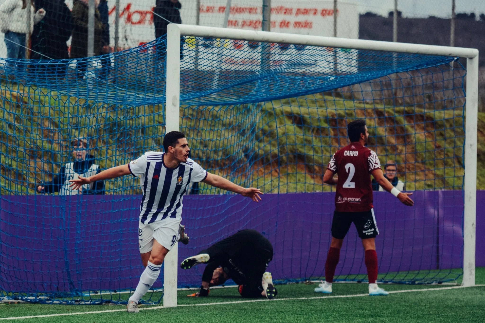 Tras la reanudación, se acabó el choque. El Real Valladolid ?B? superó por completo a su adversario y gozó de tres ocasiones que no terminaron en gol gracias a Sotres y a la falta de puntería. Además, Carpio cometió penalti por mano al deslizarse sobre el pasto verde para tratar de frenar un centro rival, aunque el árbitro no lo decretó. Sin embargo, Aldo One se encargó de que De la Fuente pudiera disparar desde los 11 metros al impactarle el esférico en el brazo después de un tiro. El ?9? no falló y puso el 2-0.