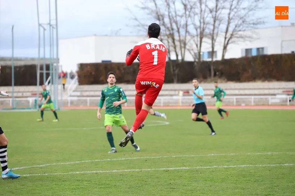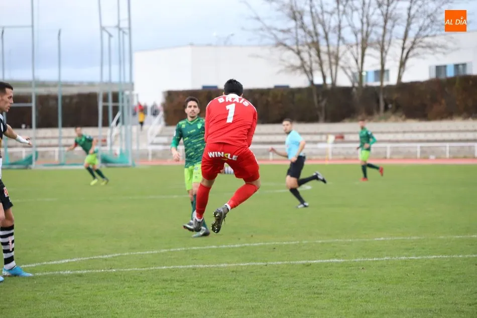 Lo intentó también el Guijuelo en busca del empate y gozó de una clara ocasión que Brais atrapó sobre la línea. El colegiado señaló falta sobre el portero gallego de Unionistas ante la insistencia de los delanteros del Guijuelo de introducir el balón en la portería, aunque Brais tenía agarrado el balón.