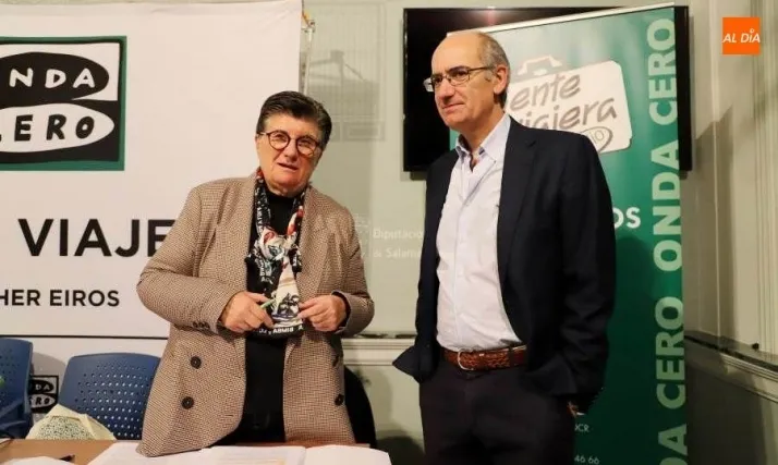 La veterana Esther Eiros entrevsitaba en La Salina al presidente de la Diputación de Salamanca, Javier Iglesias