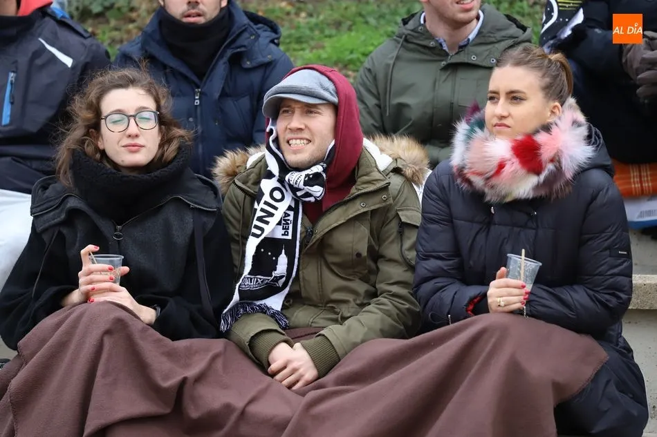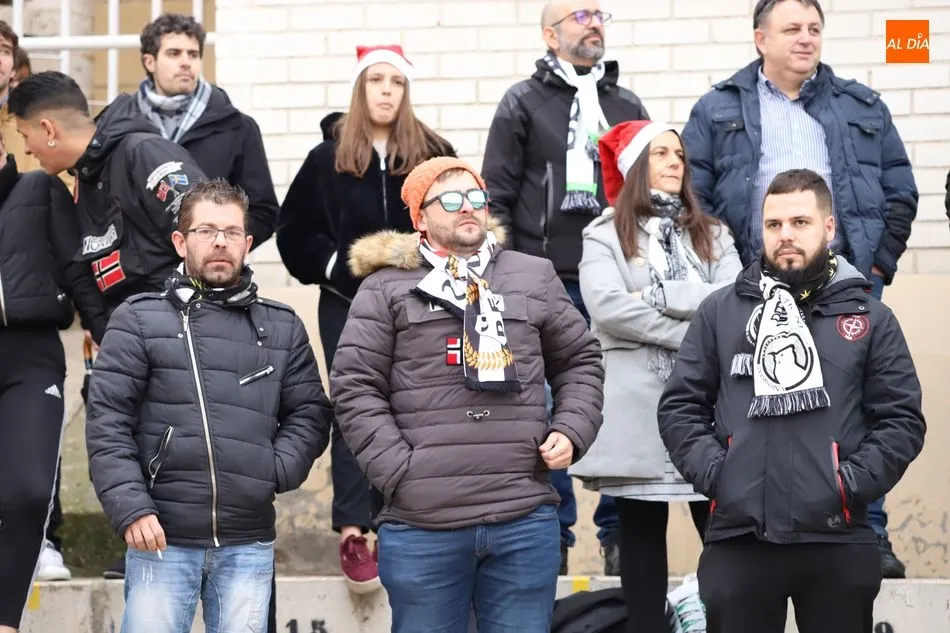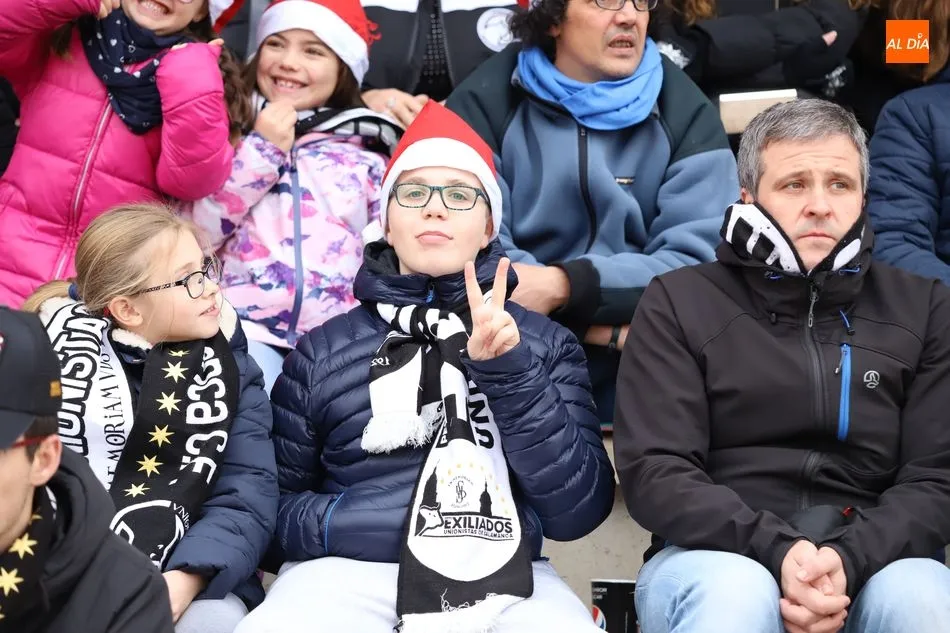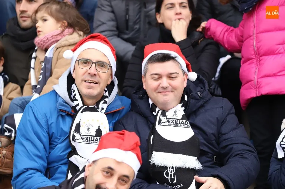Las aficiones de Unionistas y del Guijuelo disputaron el derbi en las gradas a la par que sobre el terreno de juego de las Pistas del Helmántico se disputaba otro con tres puntos en juego. El buen rollo entre ambas aficiones dio paso a una fiesta en las gradas en una muestra de hermanamiento que se inició incluso antes del encuentro.