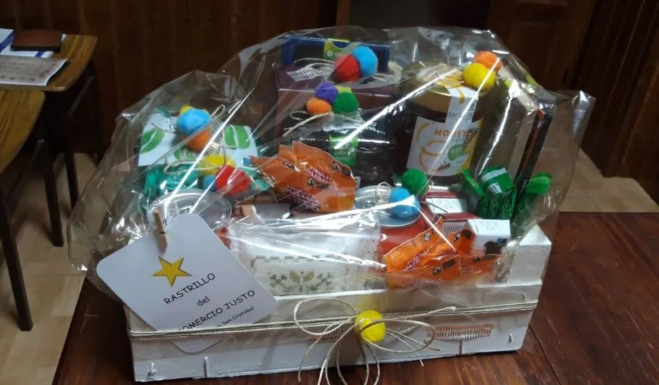 Durante la fiesta también hubo tiempo para degustar unas deliciosas castañas asadas que fueron preparadas en el exterior de la Iglesia (asimismo en el interior hubo otro convite de chucherías). En la galería figura además la imagen de la cesta que se llevará el ganador del concurso de belenes puesto en marcha por la Parroquia (los feligreses deben enviar por whatsapp imágenes de los belenes de sus casas, y el mejor se llevará la cesta, compuesta de productos de comercio justo y vales de compra en librerías).