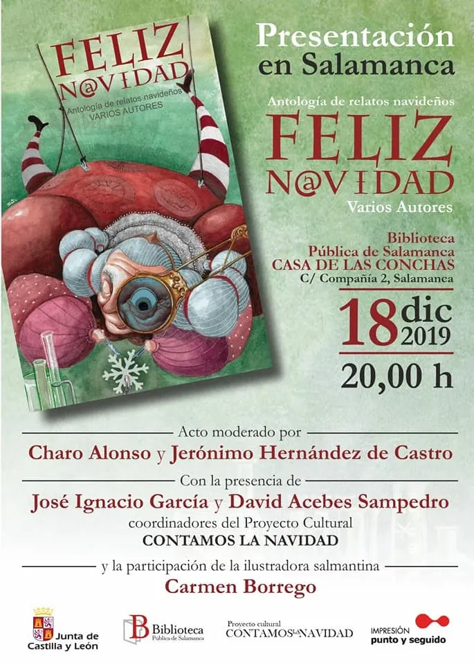 J.I.G.: Hemos contado con grandes autores salmantinos como García Jambrina, Alencart, José Luis Puerto, Manu Espada y otros, pero es verdad que la presentación en Salamanca nos hace particular ilusión este año, y más con la participación de Jero Hernández de Castro, que se ha volcado con el proyecto de una forma muy generosa, y con la de Carmen Borrego en la ilustración y la tuya como escritora aunque digas que duermes como una bendita.