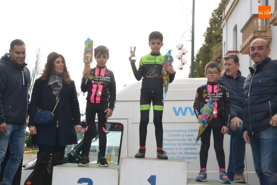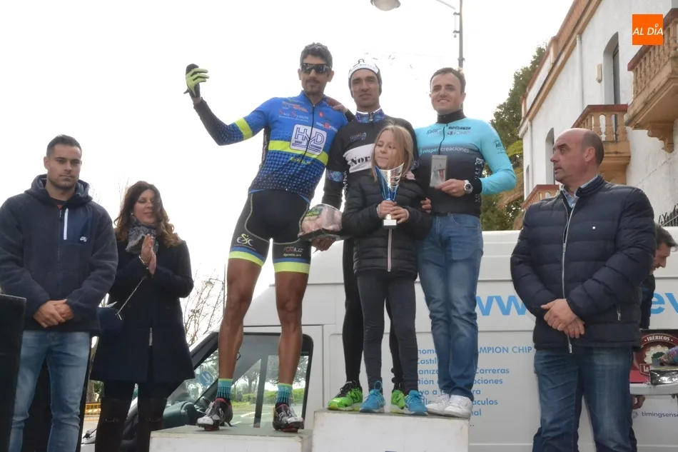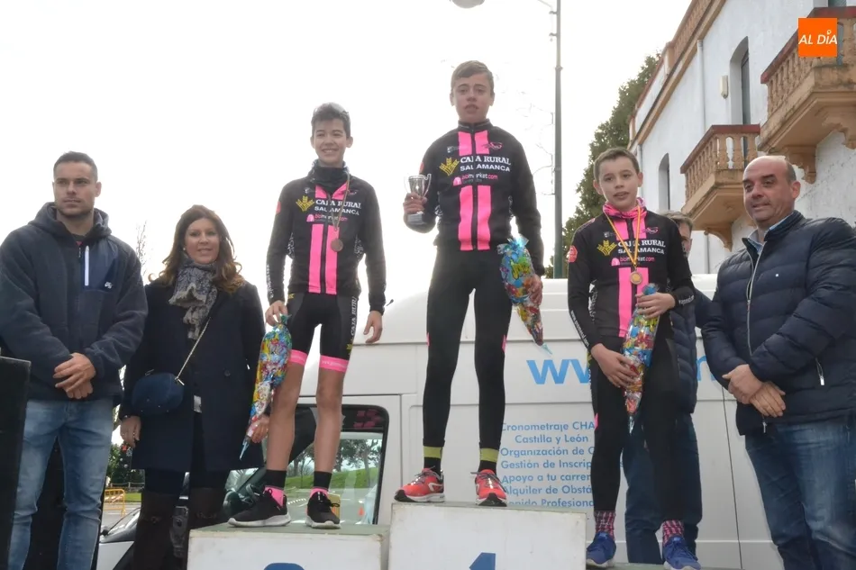 Concluida la última de las 11 carreras disputadas a lo largo de la mañana dominical, y tras un tiempo de espera, llegó la hora de entregar los premios a los primeros clasificados de cada una de las categorías de la renacida Carrera del Pavo de Ciudad Rodrigo, que fueron más que el número de carreras, ya que hubo varias en las que compitieron a la vez los ciclistas de varias categorías diferentes.