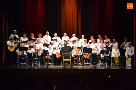 Después de haber estado en los últimos días en varias residencias y centros asistenciales de la ciudad (todavía le queda alguna, como la Residencia Mixta Provincial, adonde se acercará este viernes), la Rondalla Aires del Águeda, nacida en el seno del Centro de Día de Personas Mayores de Ciudad Rodrigo actuó en la tarde del miércoles sobre las tablas del Teatro Nuevo Fernando Arrabal.