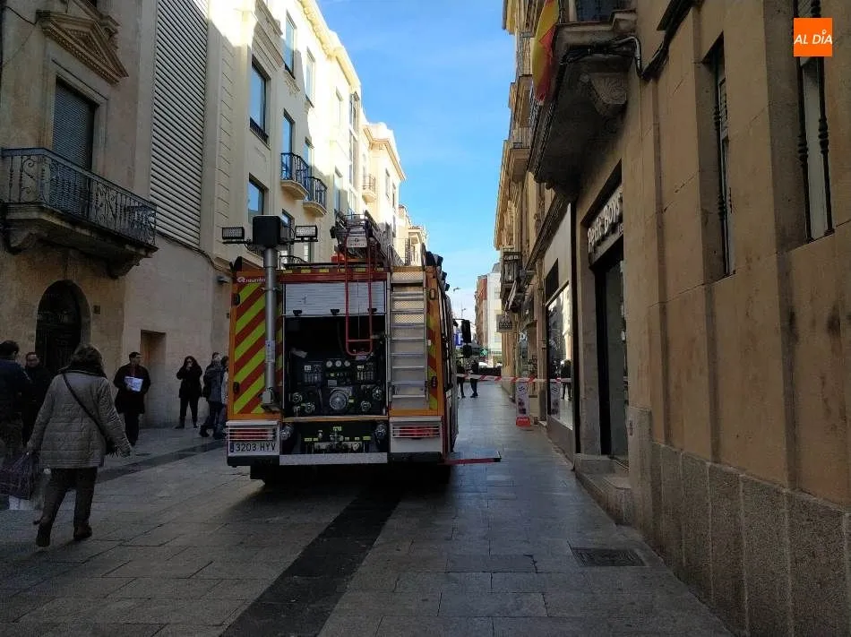 El aviso tenía lugar esta mañana, unos minutos antes de las 12.00 horas, debido al fuerte olor a gasoil, en la zona comprendida entre la calle Azafranal, junto a la plaza del Liceo, y la calle Toro.