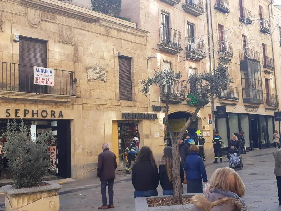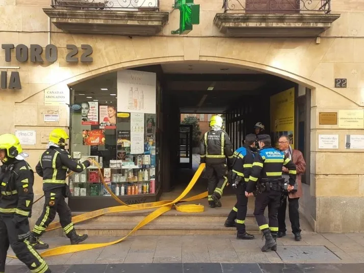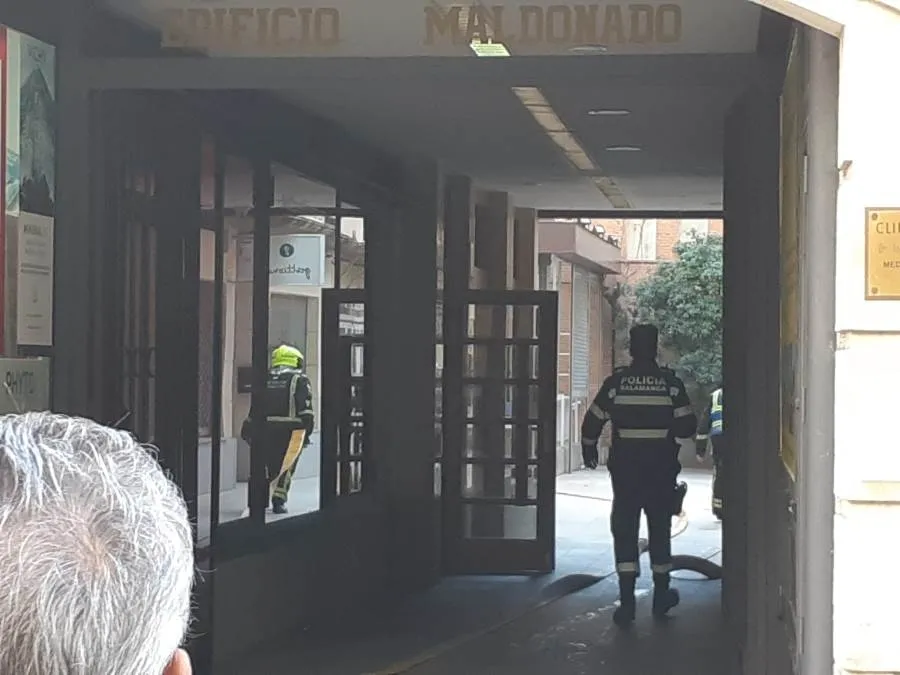 Por ello, una dotación del Servicio Municipal de Bomberos y agentes de la Policía Local acudían a la zona. Los primeros realizaron una minuciosa inspección en algunos bloques, incluida una residencia de estudiantes o el edificio Maldonado, en el número 22 de la calle Toro.