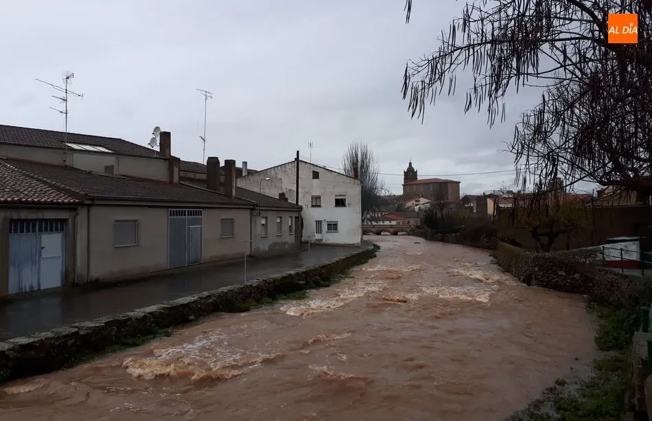 Después de más de un año con su cauce totalmente seco, la borrasca Elsa ha hecho que el arroyo Froya recobre este jueves la vida a su paso por Lumbrales, donde se ha registrado una gran crecida en su caudal.