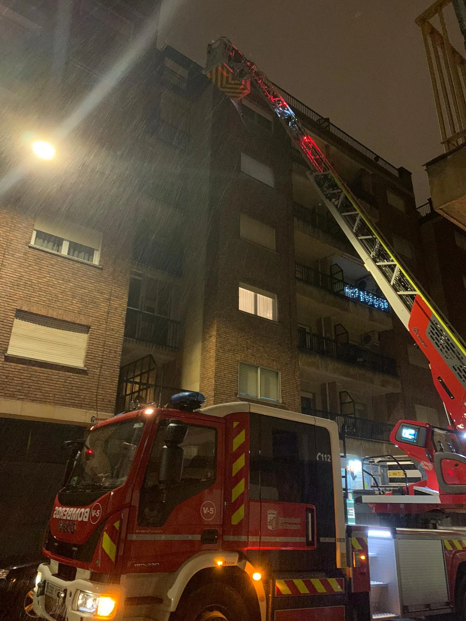 Los Bomberos tuvieron que movilizarse en la noche del viernes por el desprendimiento de una cornisa en la calle Joaquín Costa. El servicio de emergencias tuvo que trasladarse hasta el lugar de los hechos para subsanar el percance.