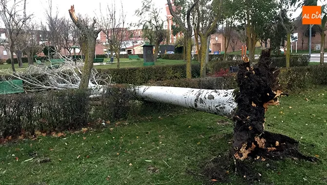 Precisamente el viento ha sido el causante de la caída de dos grandes árboles en este parque, que han sido arrancados de raíz del suelo debido a las fuertes rachas que se están viviendo este sábado, lo que hacen mantener una especial precaución en peatones y vehículos durante las próximas horas.