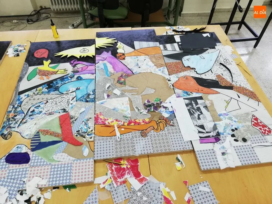 En este apartado creativo cabe señalar la elaboración de un mural sobre el Guernica, actividad en la que participaron varios grupos de alumnos del centro y que una vez finalizado el mural este pasará a ocupar un lugar destacado en el IES.