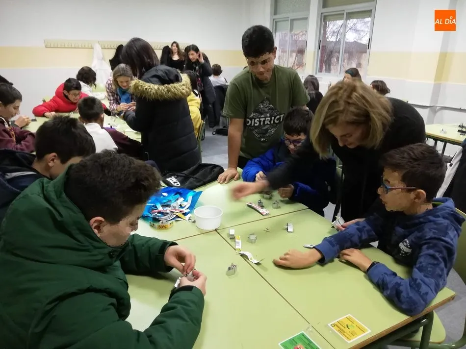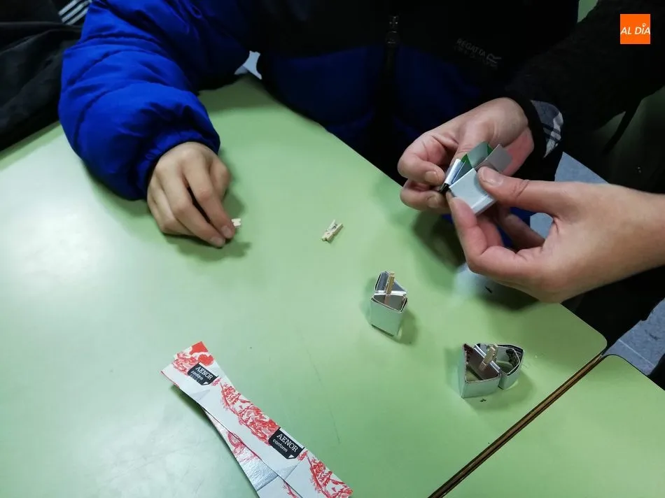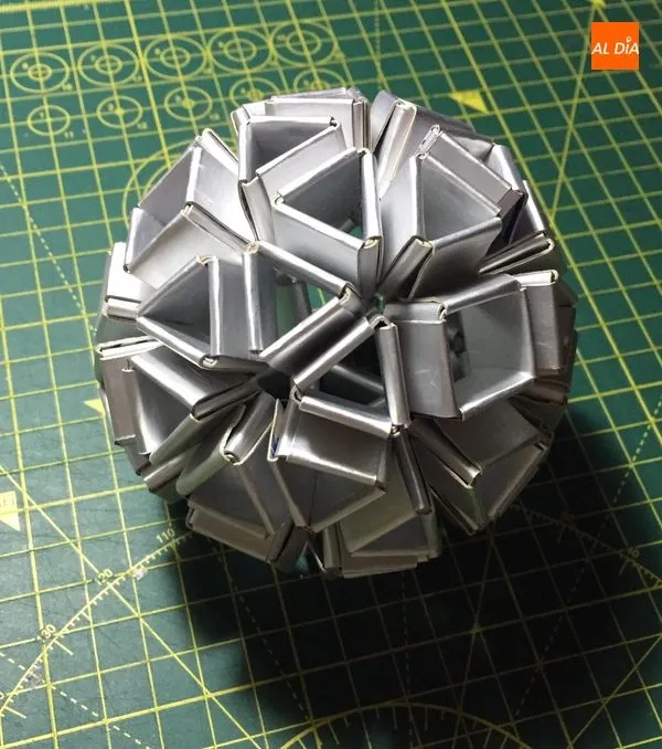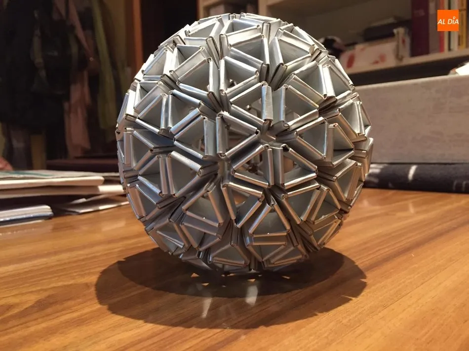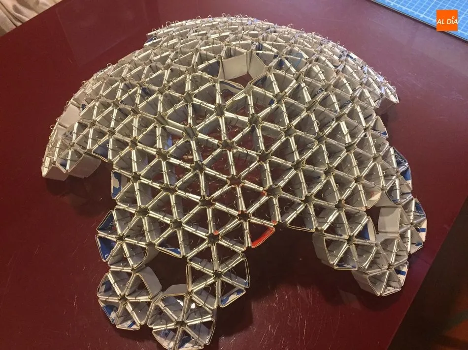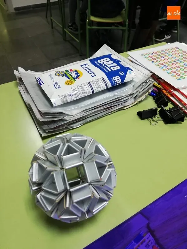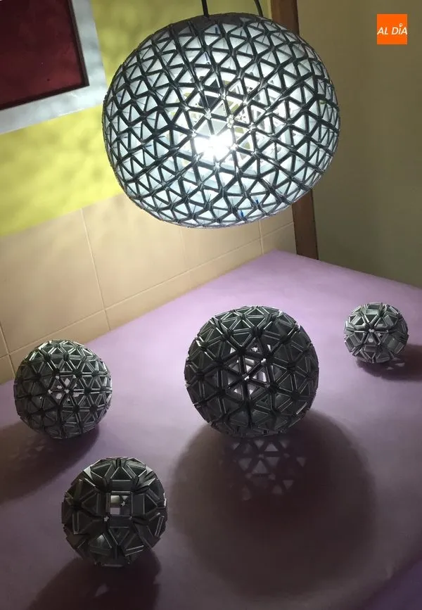 Así, a lo largo de la jornada, los alumnos pudieron participar en un taller de papiroflexia en el que reciclaron tetrabrik de leche para hacer lámparas y otros objetos navideños. El objetivo primero era construir unos pequeños triángulos que después agrupados se convertirían en hexágonos y pentágonos, creando diferentes estructuras modulares capaces de cerrar completamente el espacio.