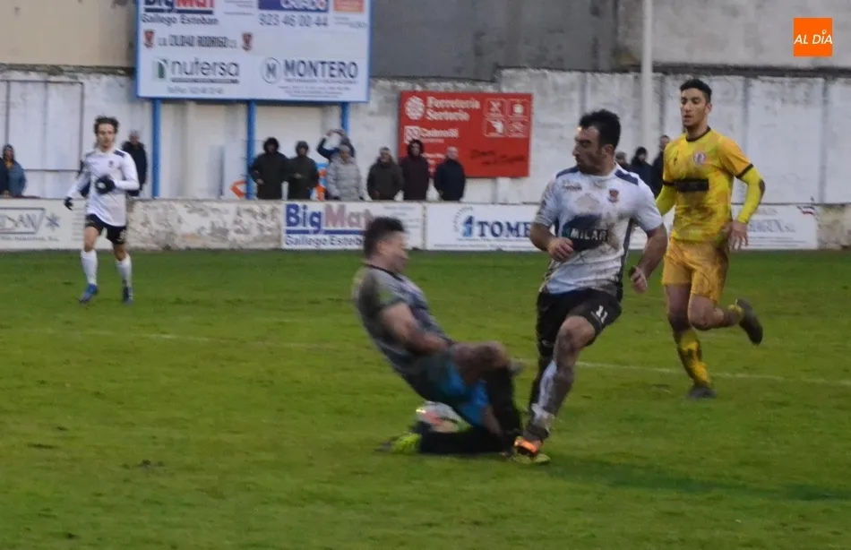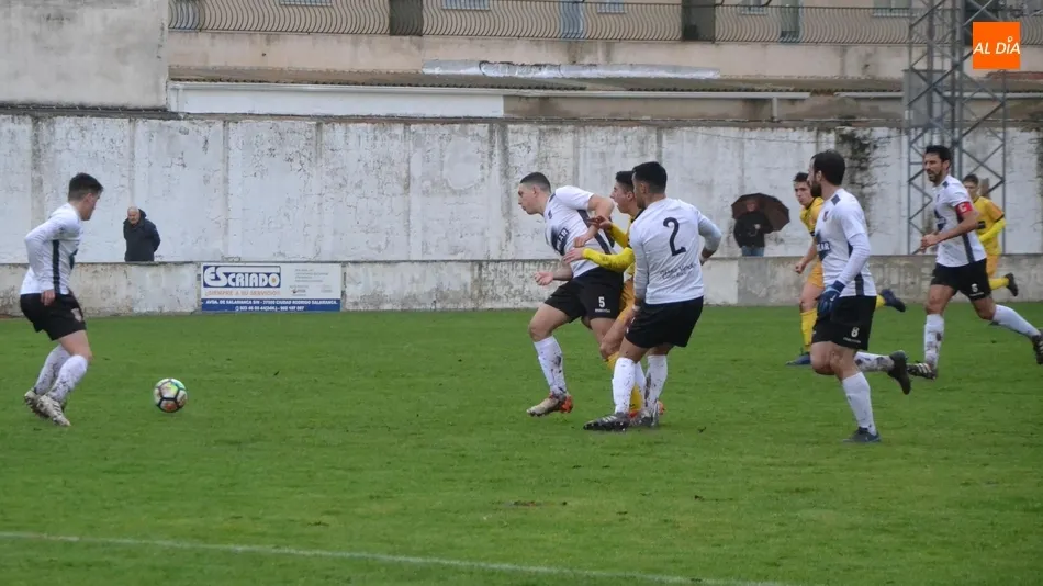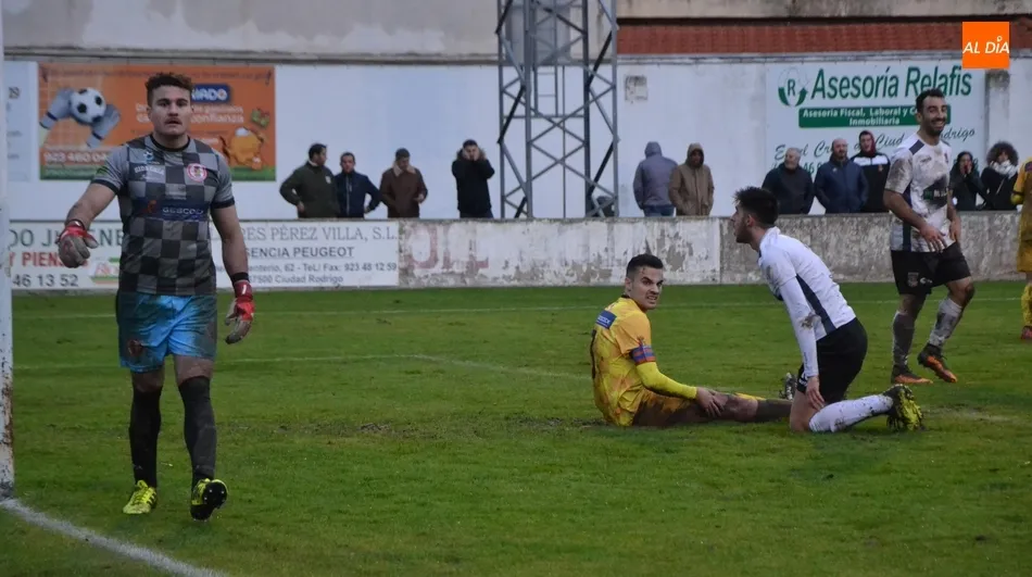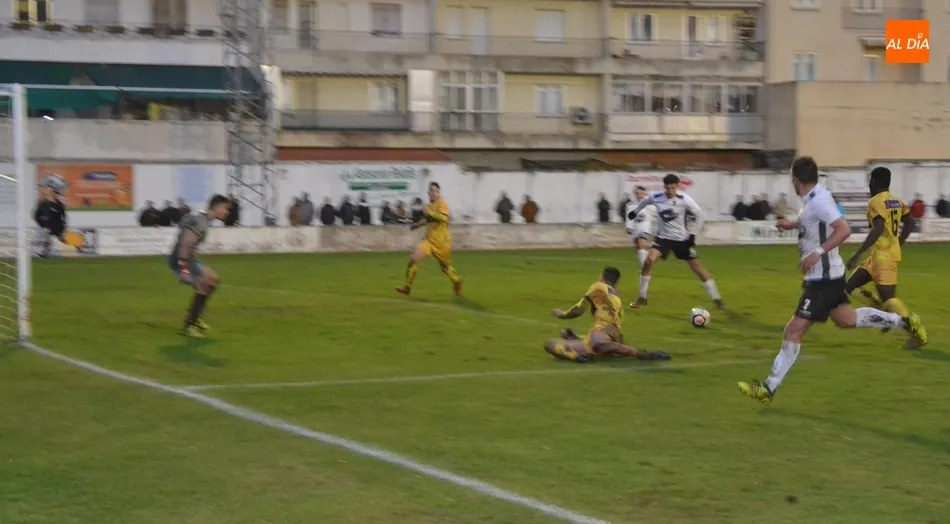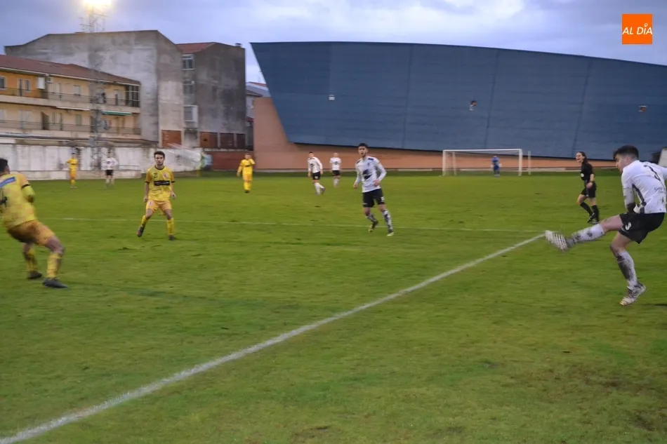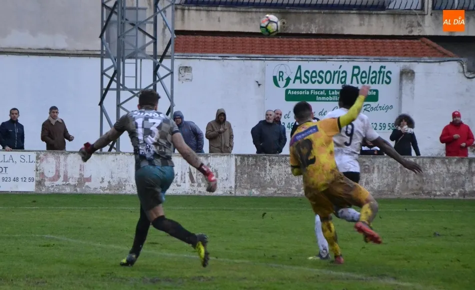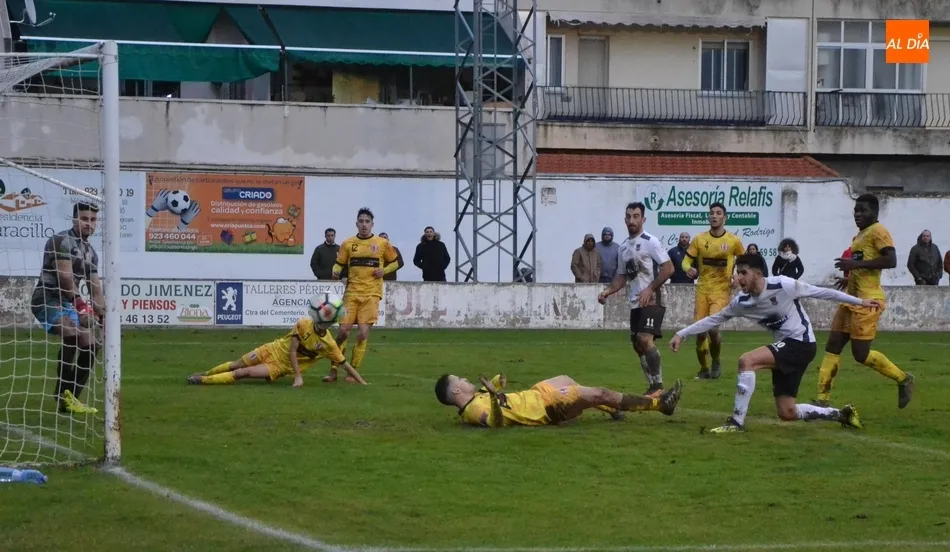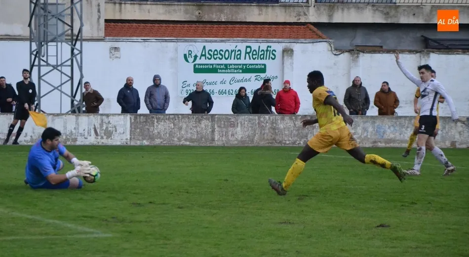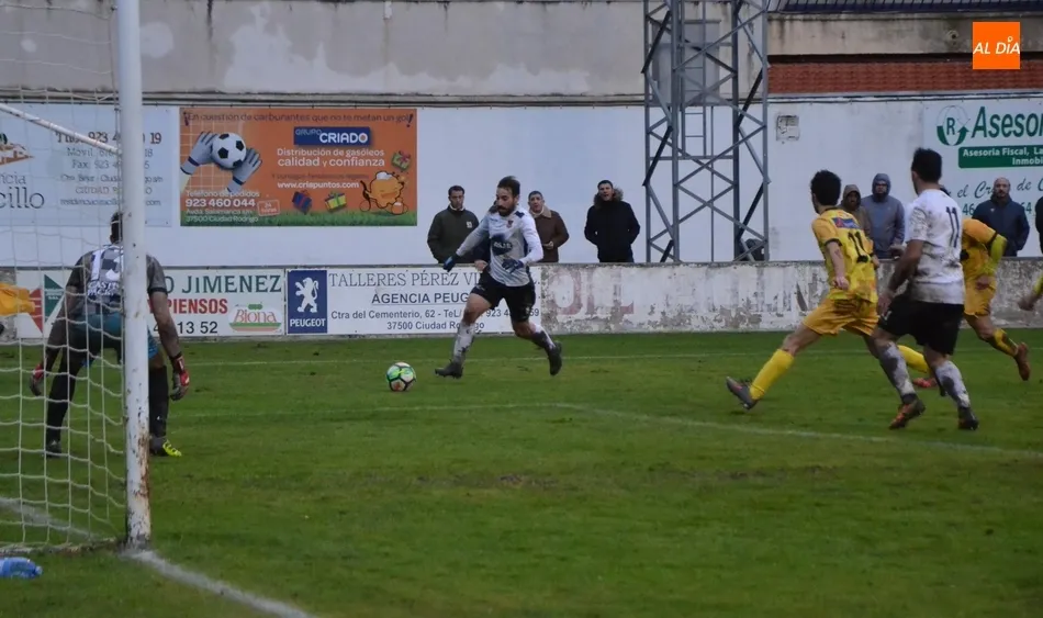 La parada más espectacular de este primer tiempo fue posiblemente la que tuvo lugar en el 30?, cuando Alberto García remató de cabeza una falta botada por Maza, realizando el portero un enorme paradón a una mano por alto, yéndose el balón a córner. La insistencia mirobrigense volvió a tener recompensa en el 37?, con un tanto de Marcial dentro del área a pase desde la derecha de Alberto García. En los instantes finales del primer tiempo, no hubo opciones tan claras, salvo un remate de cabeza cruzado en el 2º palo de Javi Moríñigo en un saque de esquina que se perdió fuera.