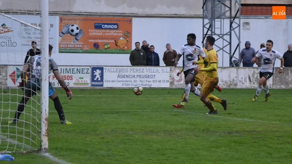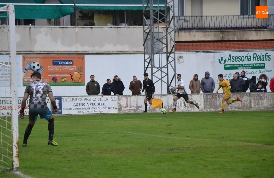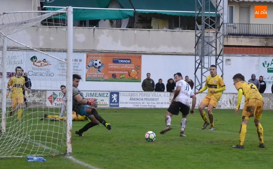Por si este inicio de partido no fuera ya memorable, Pepo le puso una guinda más en el 26?, con un gol desde su propia portería: envió el balón hacia adelante, le botó al guardameta rival justo delante suyo pillándole desprevenido y el balón acabó dentro de la red, para éxtasis de la afición. El Ciudad Rodrigo estaba de subidón, y en los instantes siguientes el portero rival tuvo que hacer dos grandes intervenciones, a un tiro inicial de Alberto García, y al rechace de Maza. El siguiente en probarlo fue Edu Sánchez, encontrándose también con el guardameta.