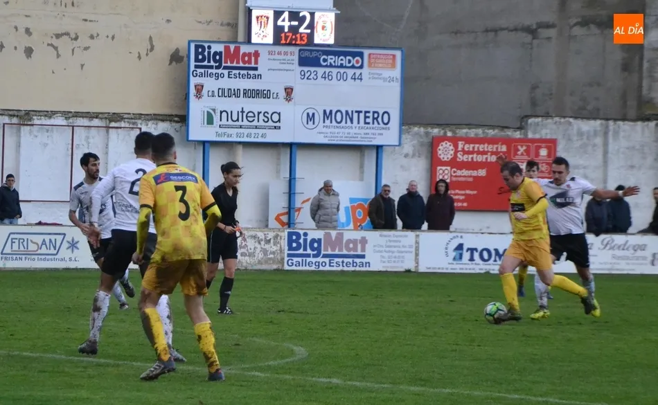 El Ciudad Rodrigo siguió con los cambios, pero mantuvo su peligrosidad ofensiva, como por ejemplo una gran jugada de Dani Crespo por la izquierda que finalizó con un tiro forzado que se perdió; o un remate de Manu Blanco a pase de Manu González, que estrelló en el portero. Mientras, en el 88?, Lafu hizo una intentona rasa desde la media luna del área que atrapó el guardameta.