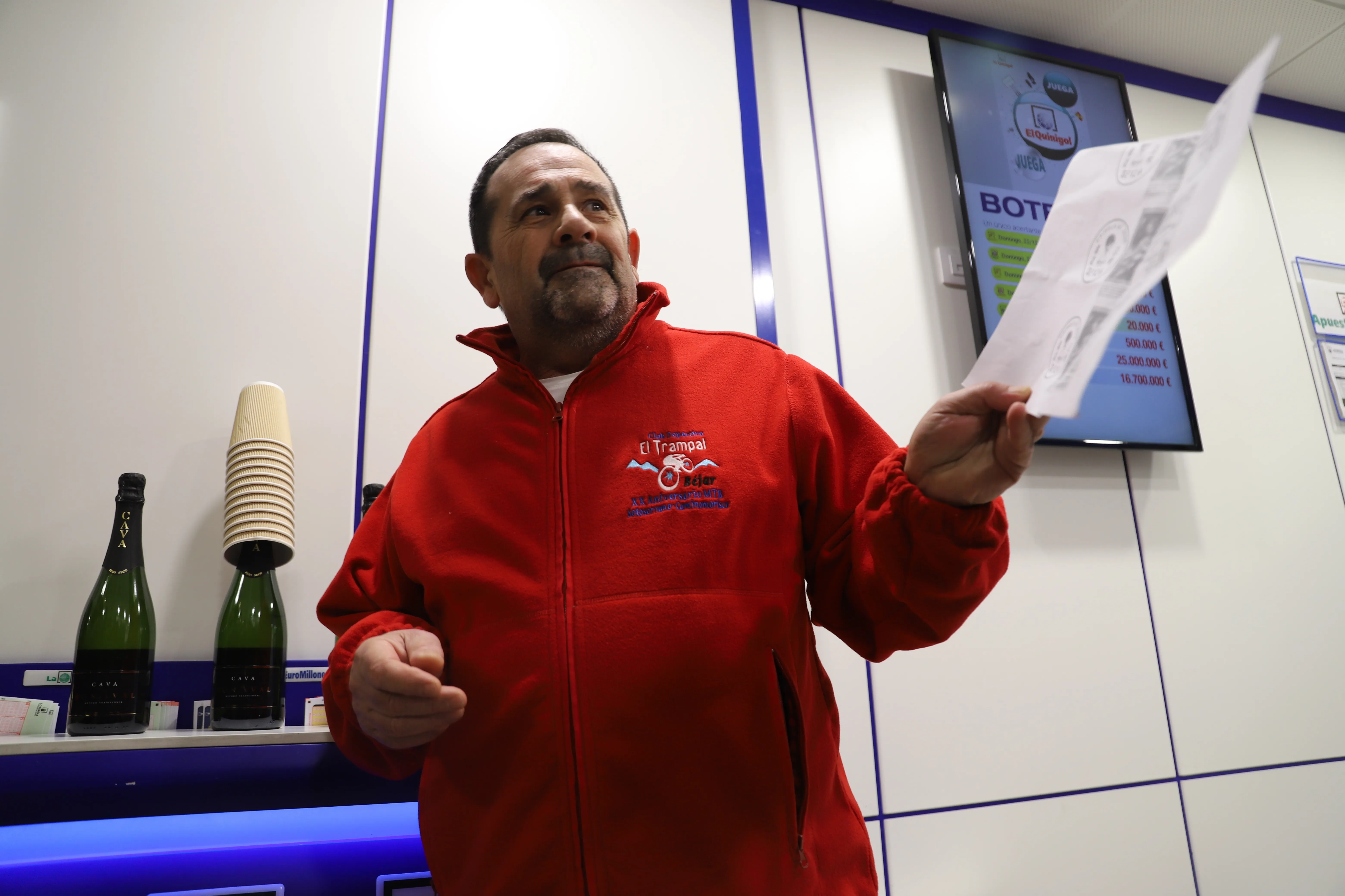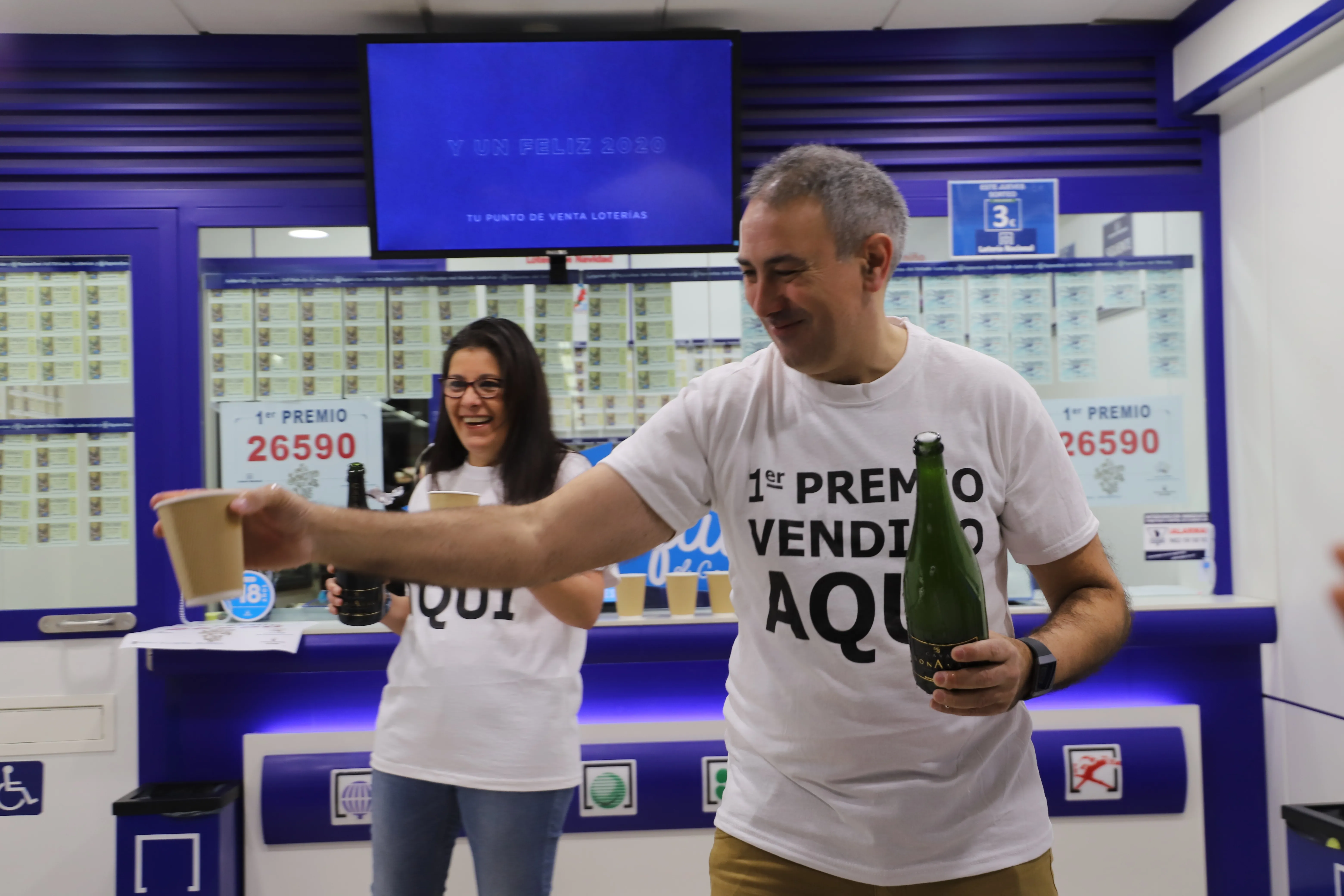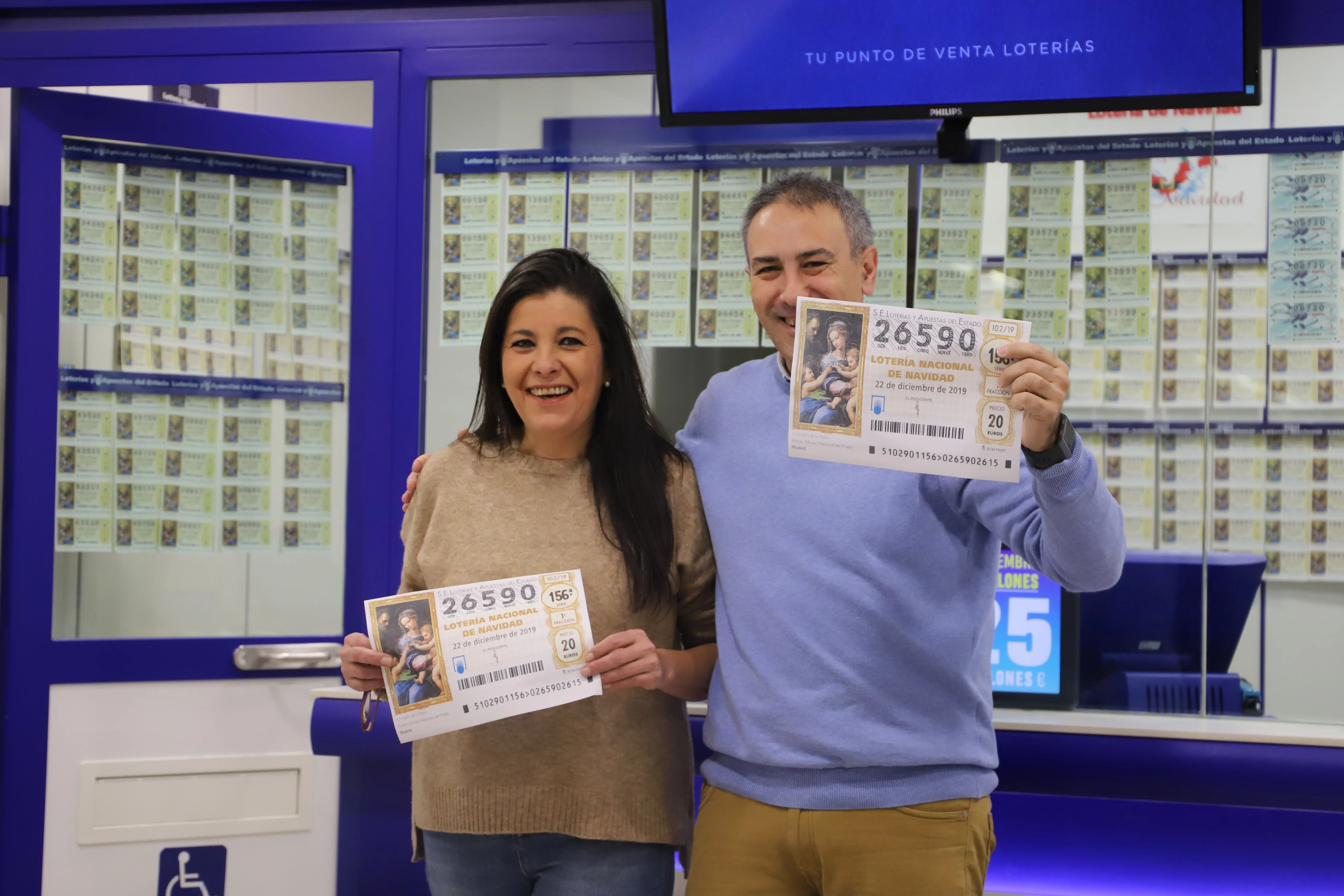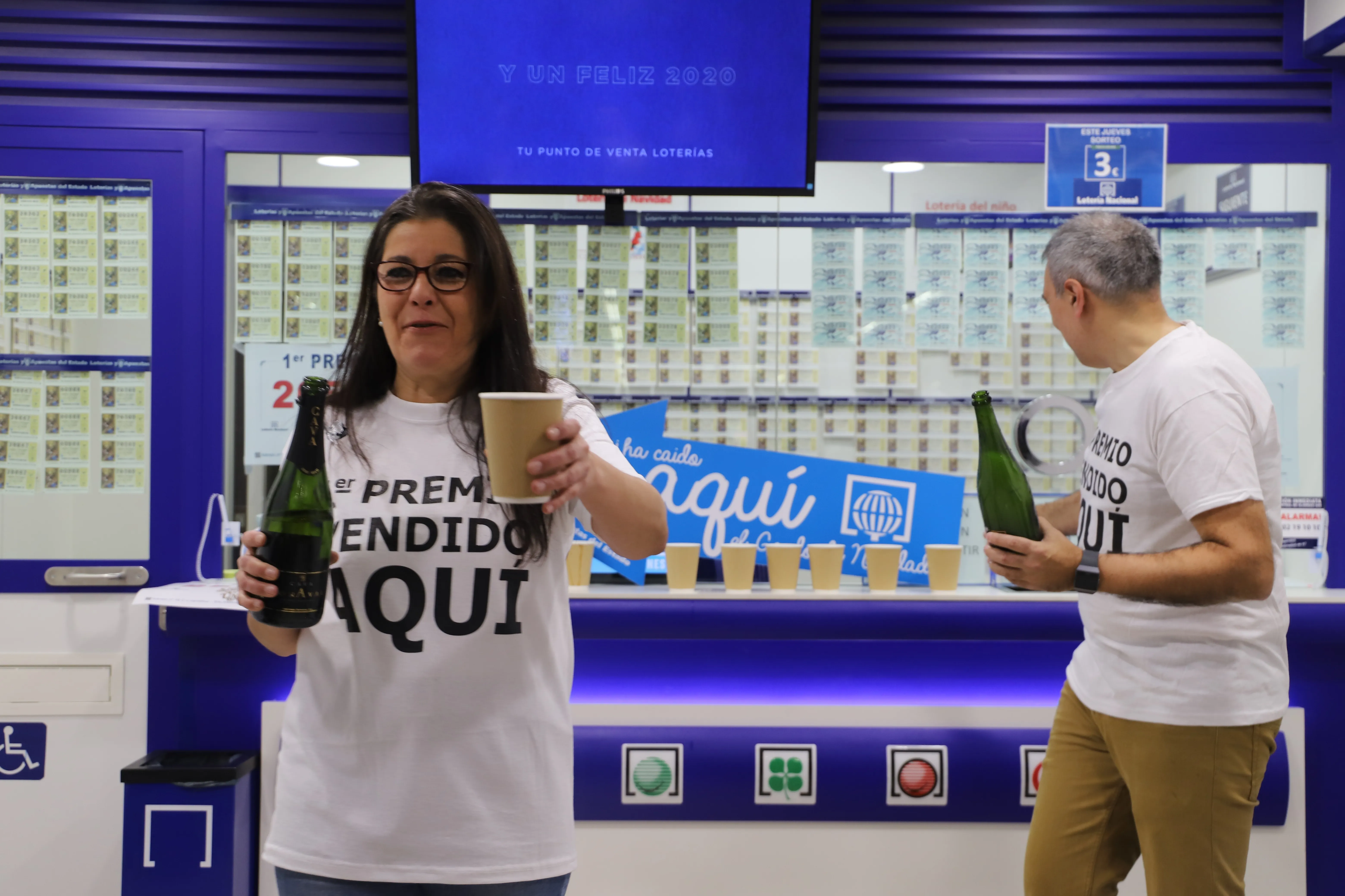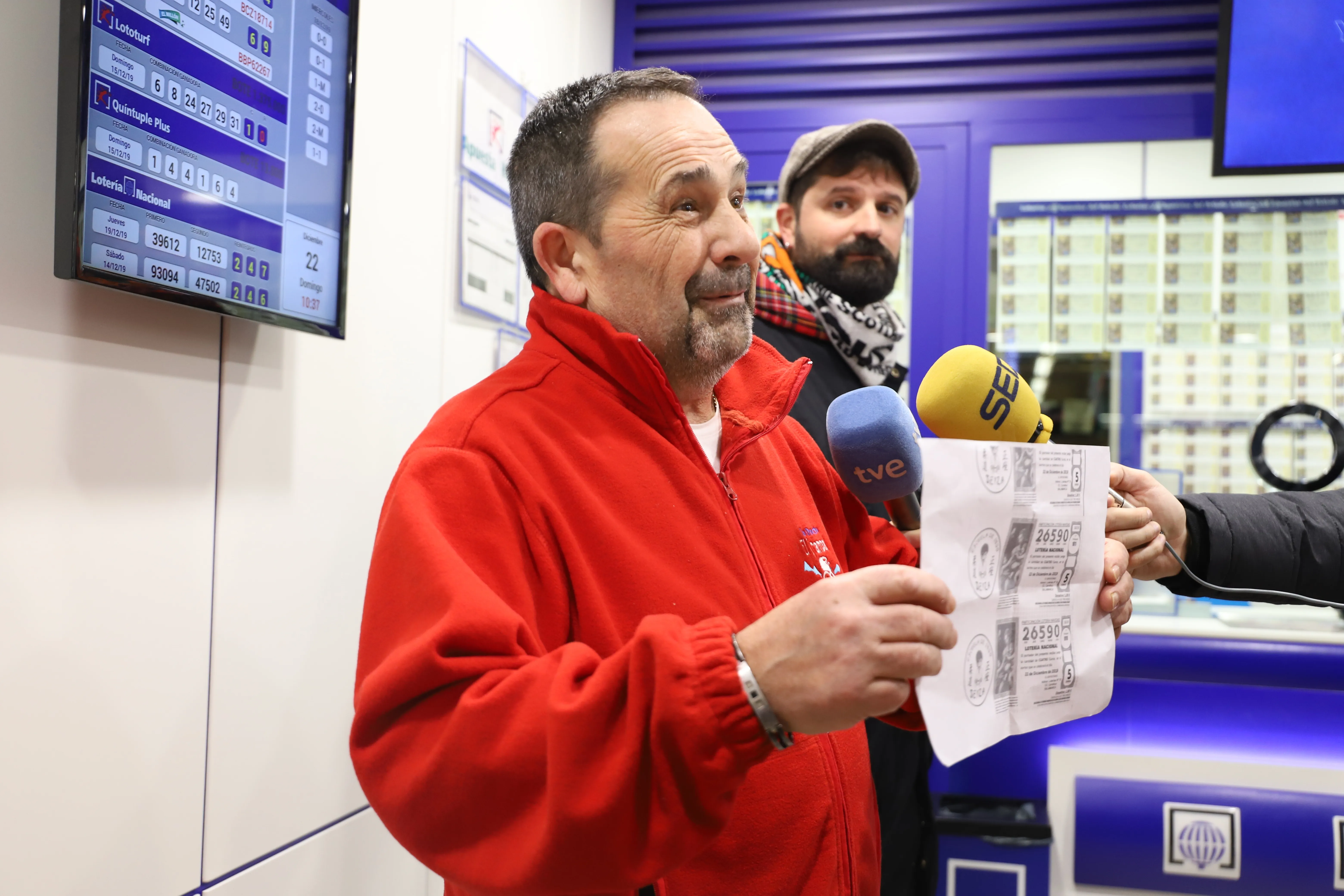"Venía conduciendo en el coche y me ha llamado mu marido", ha explicado sobre un número, el 26.590, que desde hace seis años siempre vende a la escuela de judo. "Supongo que vendrán por aquí", ha apostillado instantes antes de cantar el número.