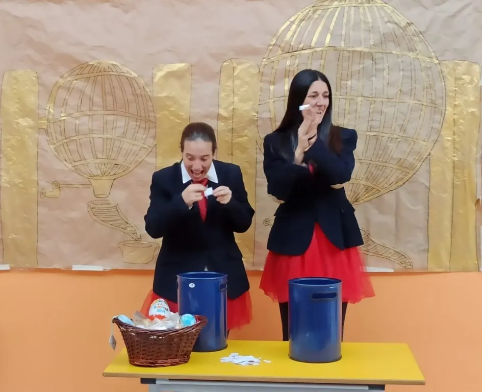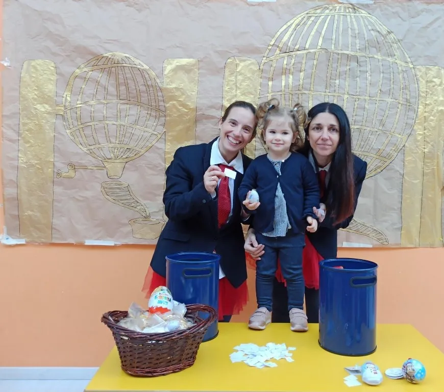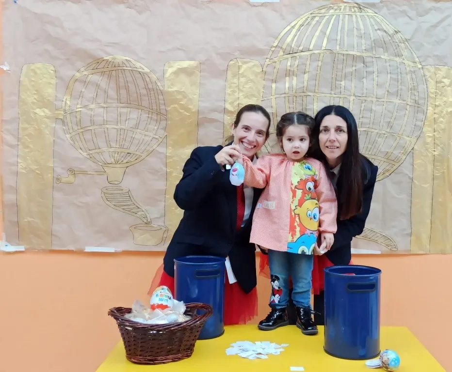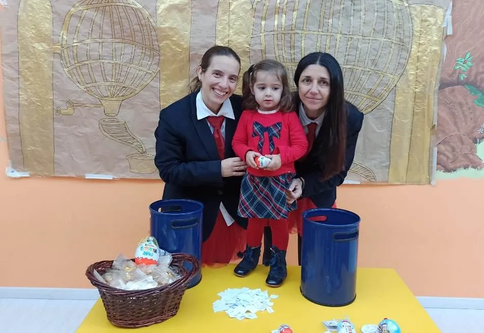 Como se puede ver en las imágenes, las responsables de la Escuela se vistieron al estilo de los Niños de San Ildefonso para ir repartiendo la suerte, consistente en mucho chocolate de distintos tamaños. Aquellos que no tuvieron la suerte de hacerse con alguno de los premios ?grandes?, se llevaron como premio de consolación una ?monedita de chocolate?.