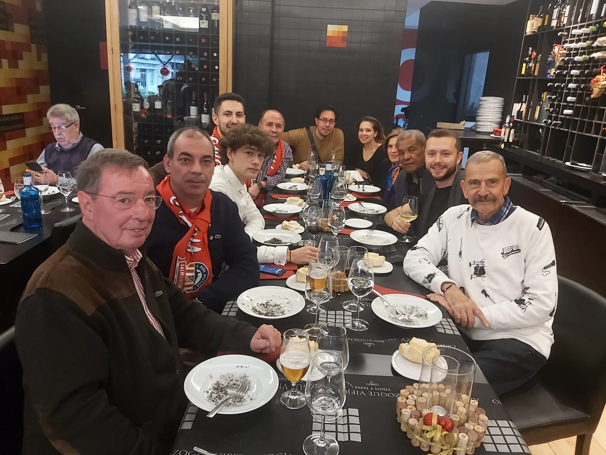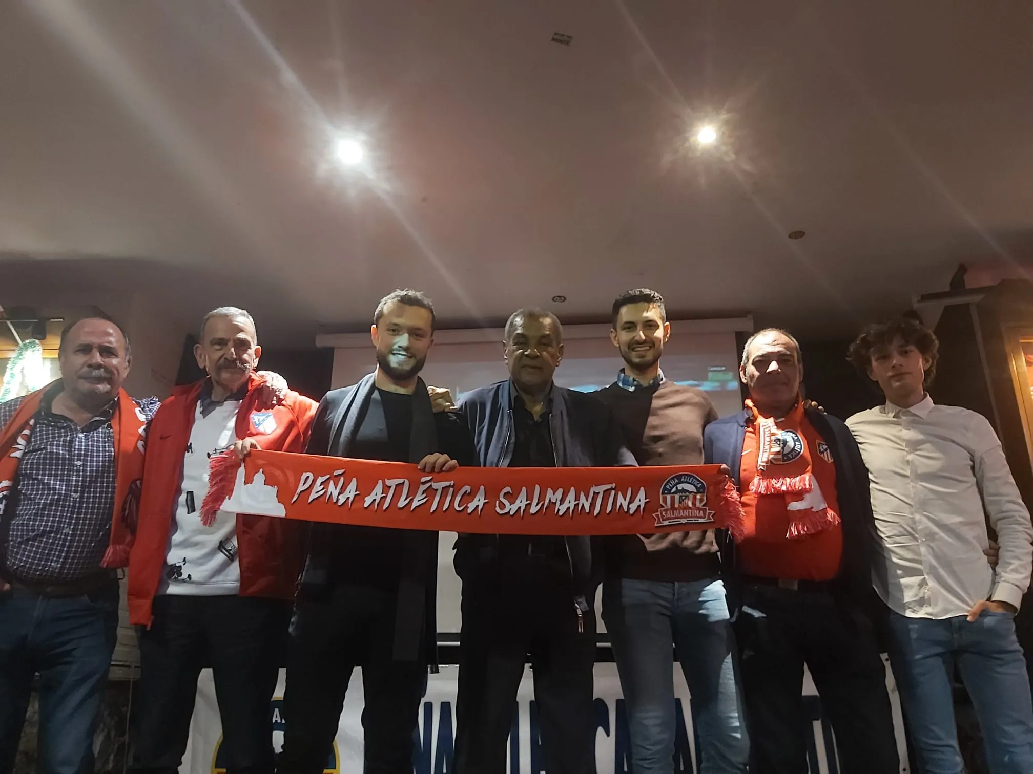 El conocido exjugador colchonero estuvo presente con los miembros de la peña en su cita anual